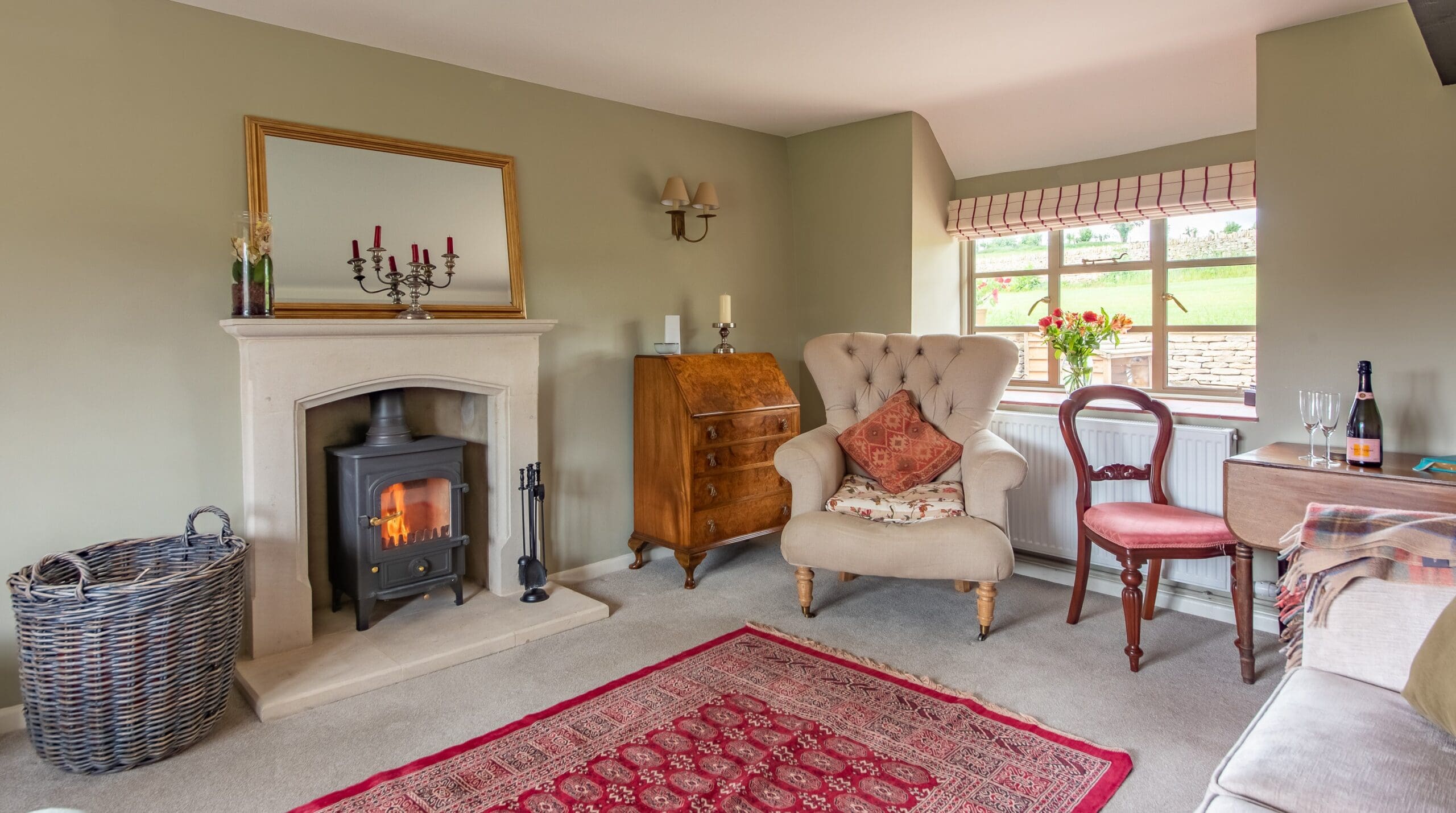 A well-equipped kitchen and two comfortable bedrooms, each with its own bathroom, complete the home, but there’s a little treat out on the private terrace in the form of your very own hot tub. Out here there’s a table and chairs, as well as a barbecue and fire pit, and you’ll have access to the gated field if you’d like to find a perfect spot for a picnic. With a stream and a small lake nearby, there are plenty of country walks to be had from your doorstep, or it’s a fifteen-minute drive to Cirencester for great places to eat, drink and shop.