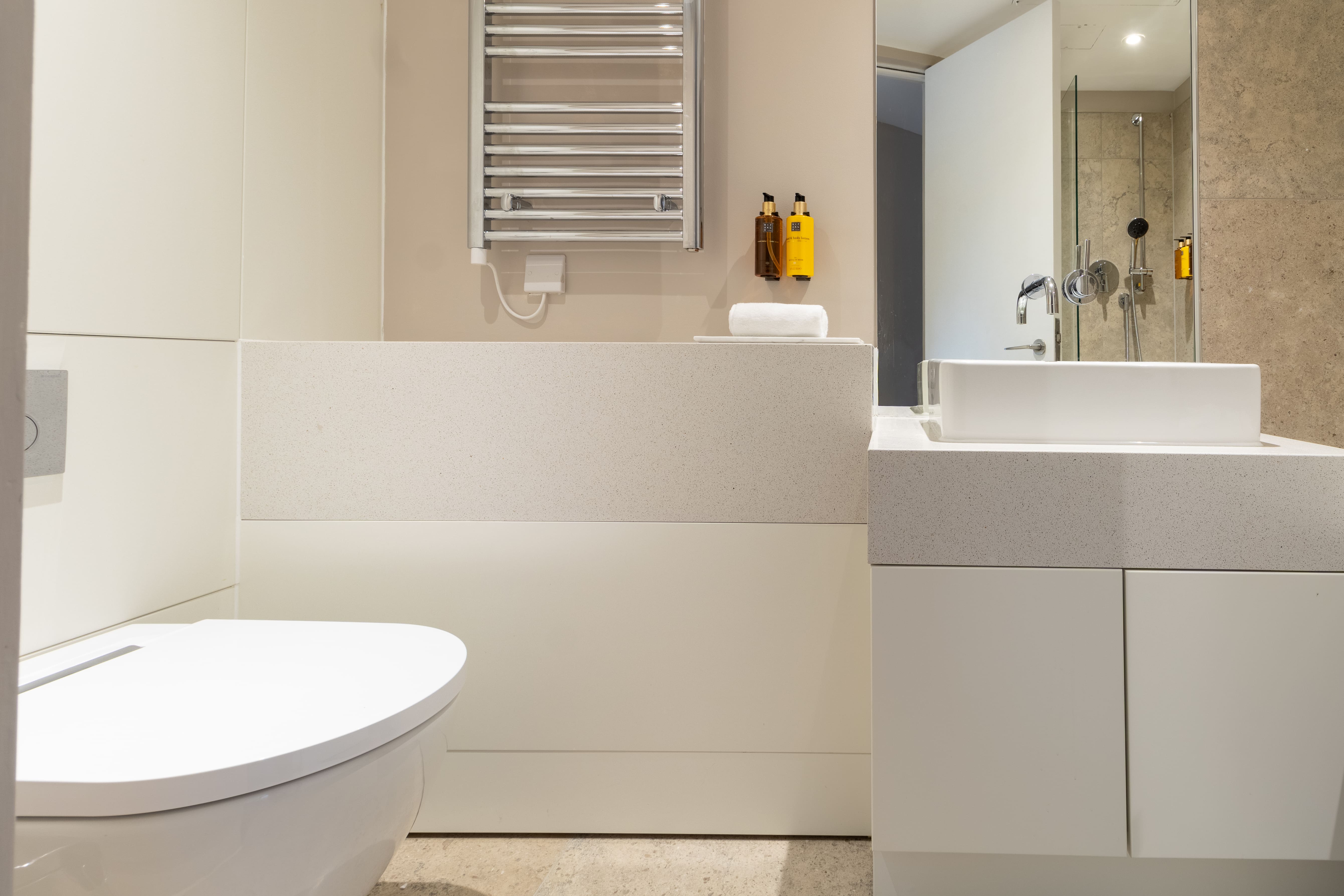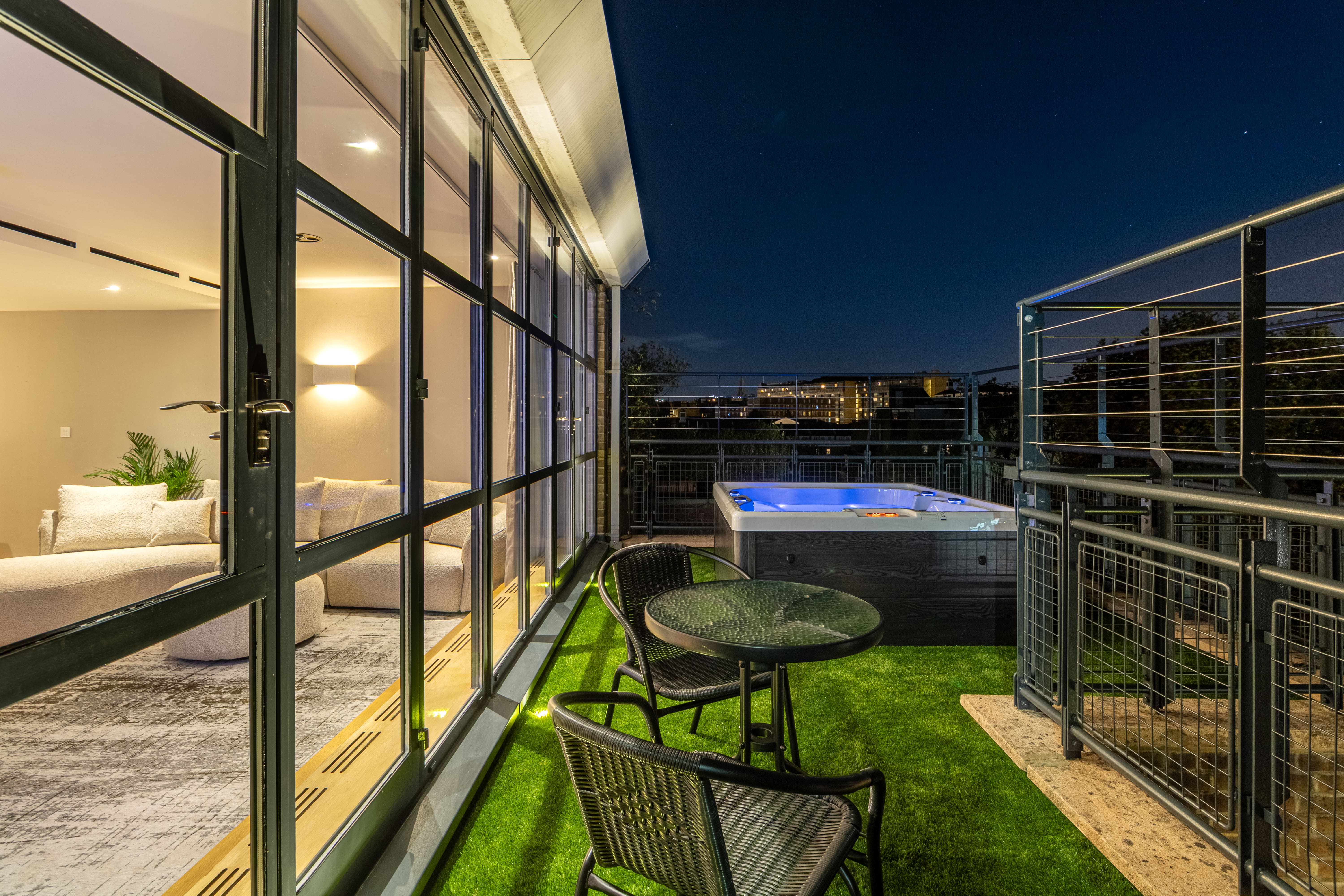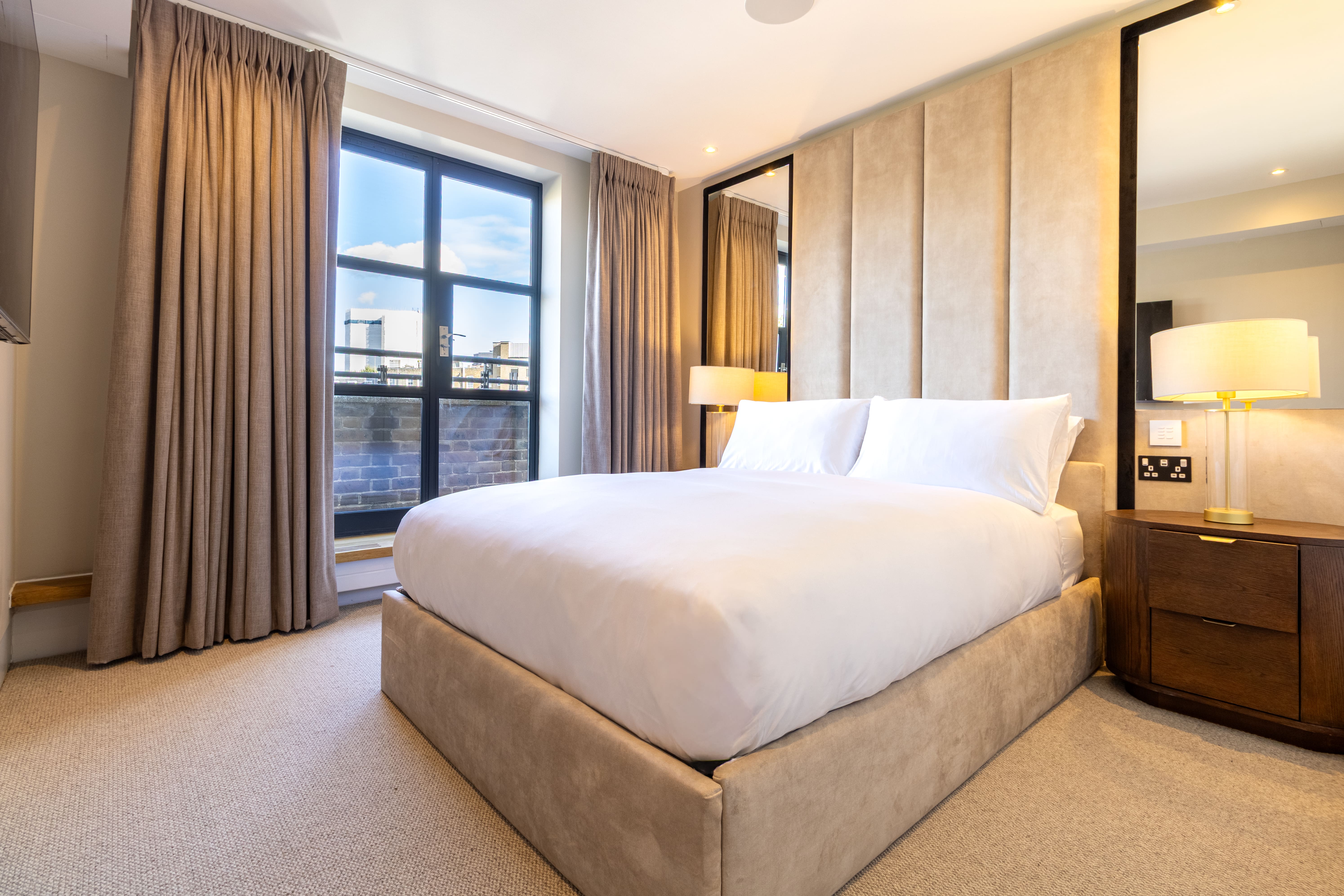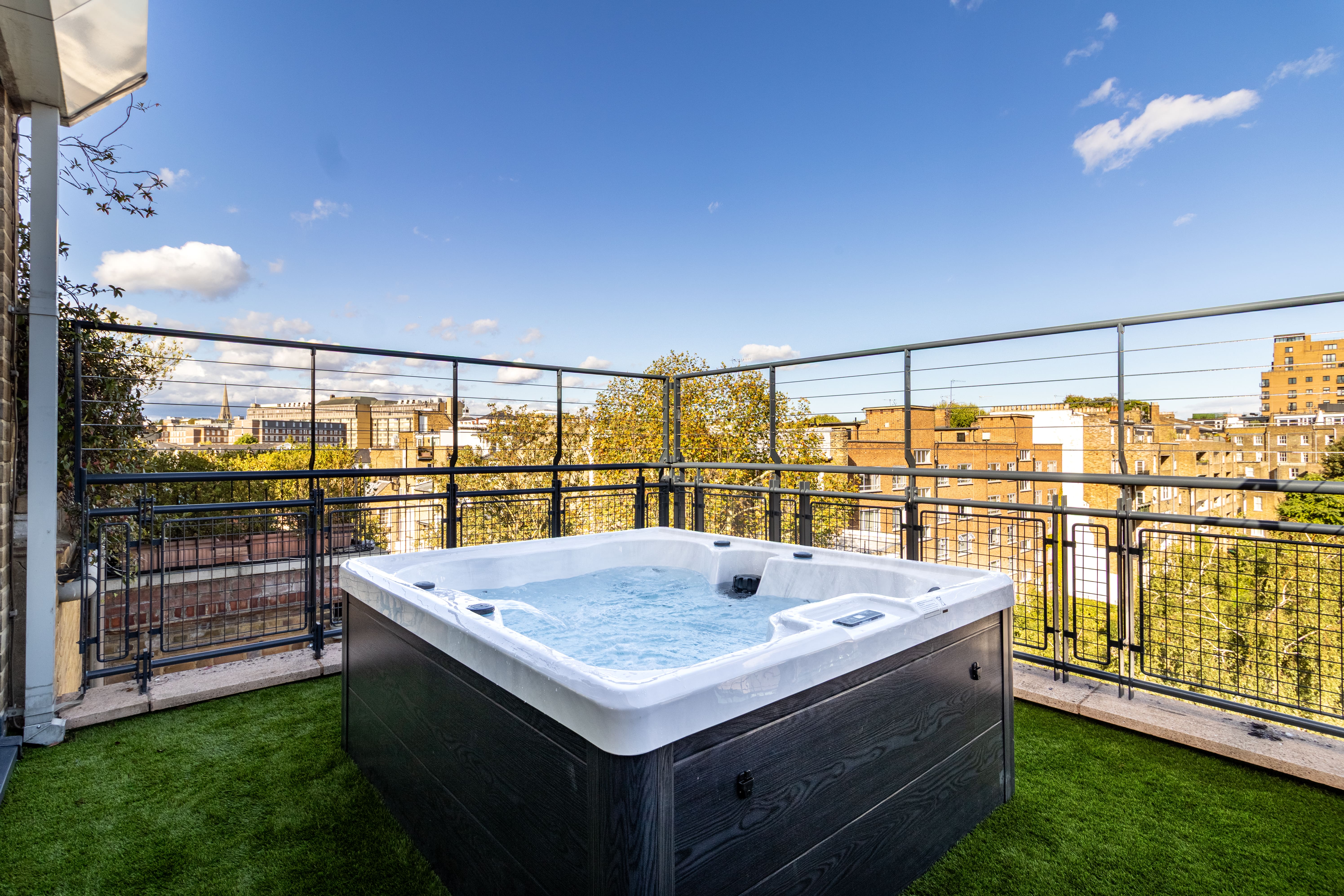Enjoy the enchanting outdoor space with a private balcony featuring a hot tub—a perfect spot for unwinding with a glass of champagne while taking in the London skyline. The apartment’s central location means you’re just steps away from the bustling heart of the city, yet you can retreat to your private haven any time.
