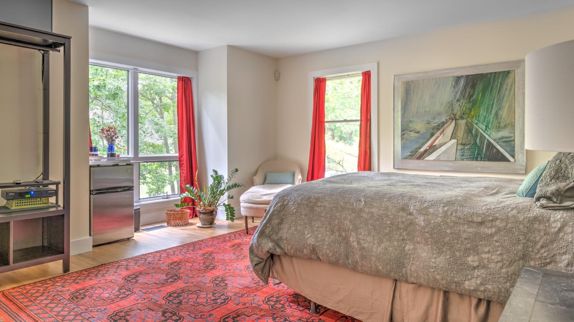 Tucked away in a serene acre of woodlands, this home fosters a sense of intimacy and seclusion that’s perfect for families looking for a Hamptons hideaway. A short drive will put you in the heart of the area’s tantalising food scene and among a glorious selection of shopping, boutiques and buzzing nightlife. A short stroll through the enchanting woods will bring you to your own private pocket of sand, sweeping lake views and stunning sunsets – a paradisiacal spot facing out to Three Mile Harbor. Retreat to a comforting home and cosy up round the feature fireplace in the living room for a cup of cocoa. Enjoy alfresco dining on the porch, equipped with a gas grill for summer barbecues, and end an idyllic day cooling off in the swimming pool or bubbling away in the jacuzzi that looks out over dozens of old oak trees.