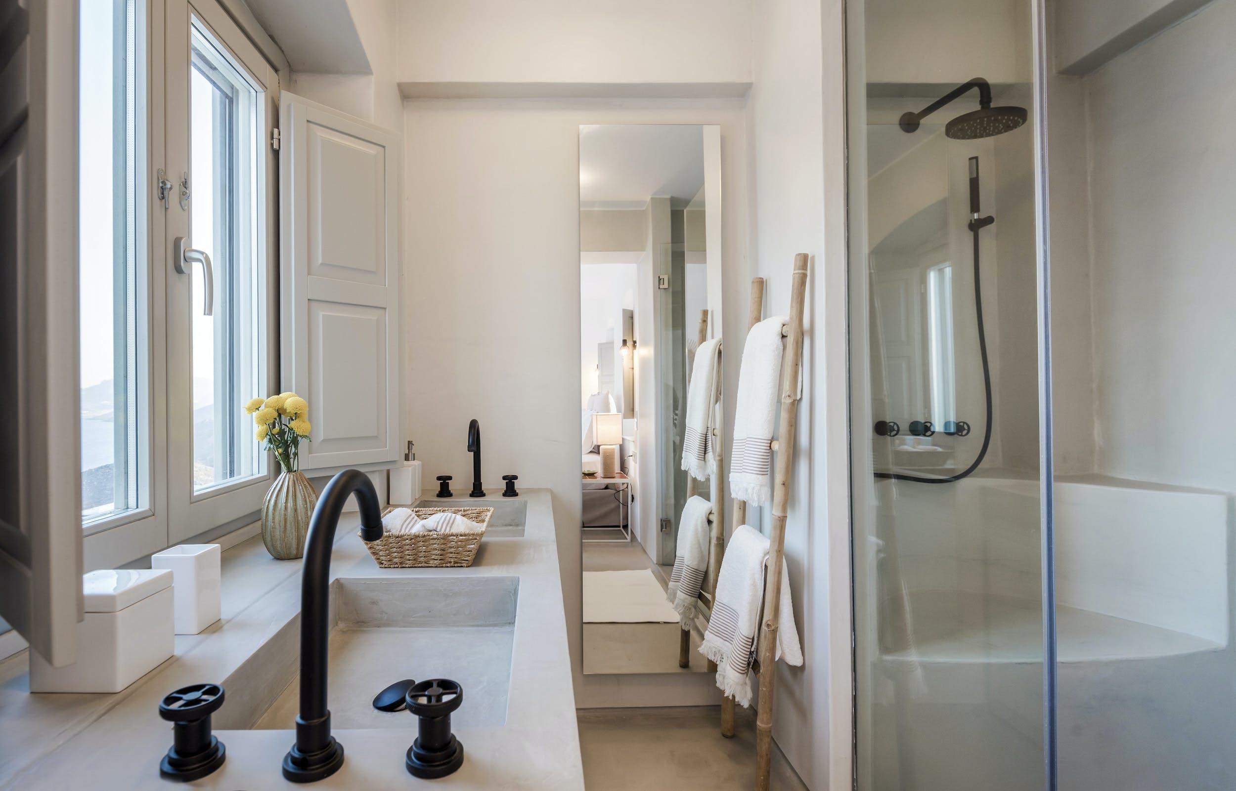 Outside, the villa’s infinity pool seems to merge seamlessly with the horizon, offering a stunning panoramic view of the sea. The hot tub provides a perfect spot for unwinding under the starry Greek skies. Expansive sun-washed terraces invite leisurely breakfasts or sunset cocktails, all with the mesmerizing Aegean backdrop. The villa’s proximity to the beach ensures endless days of sun and sand.