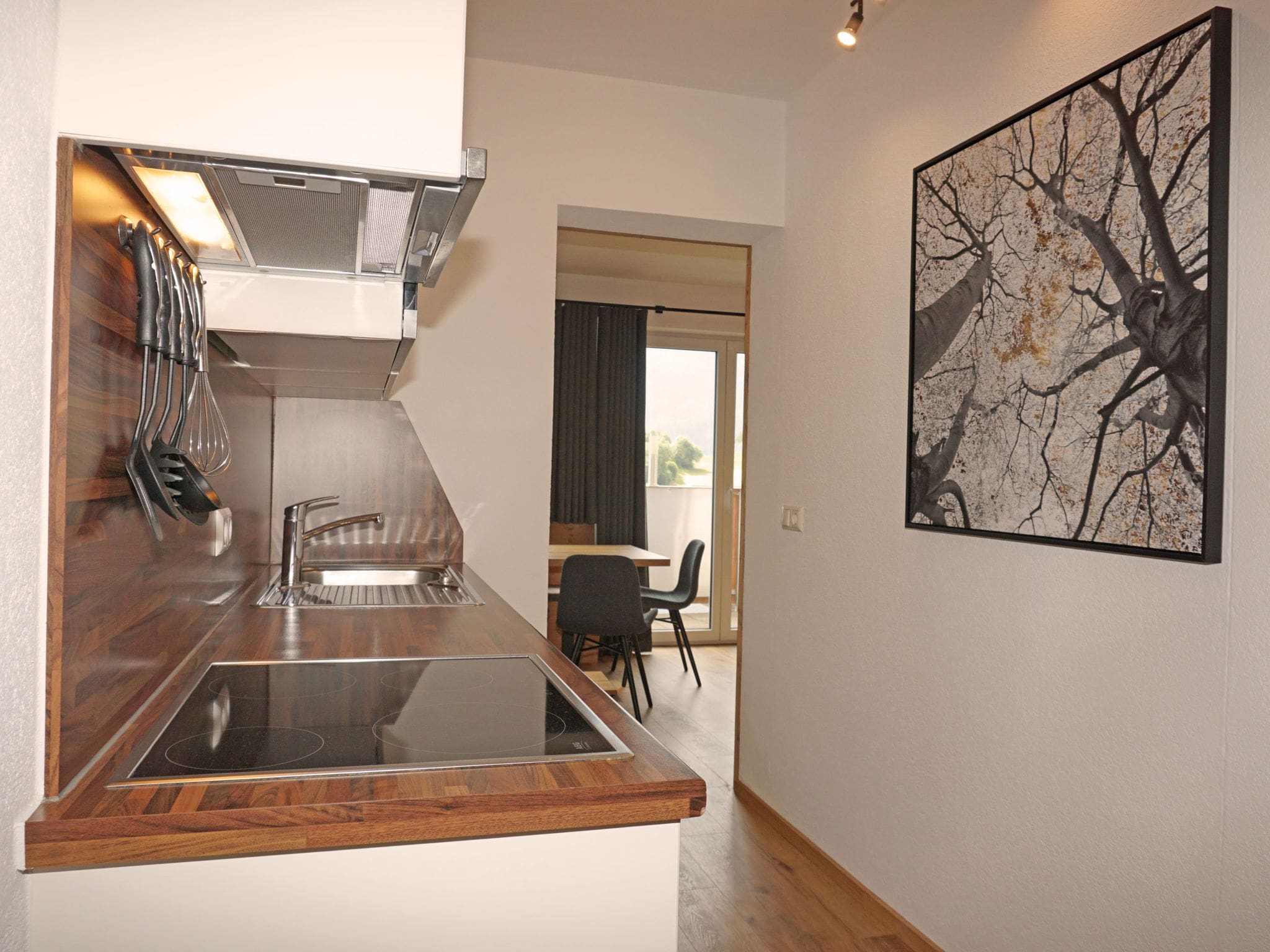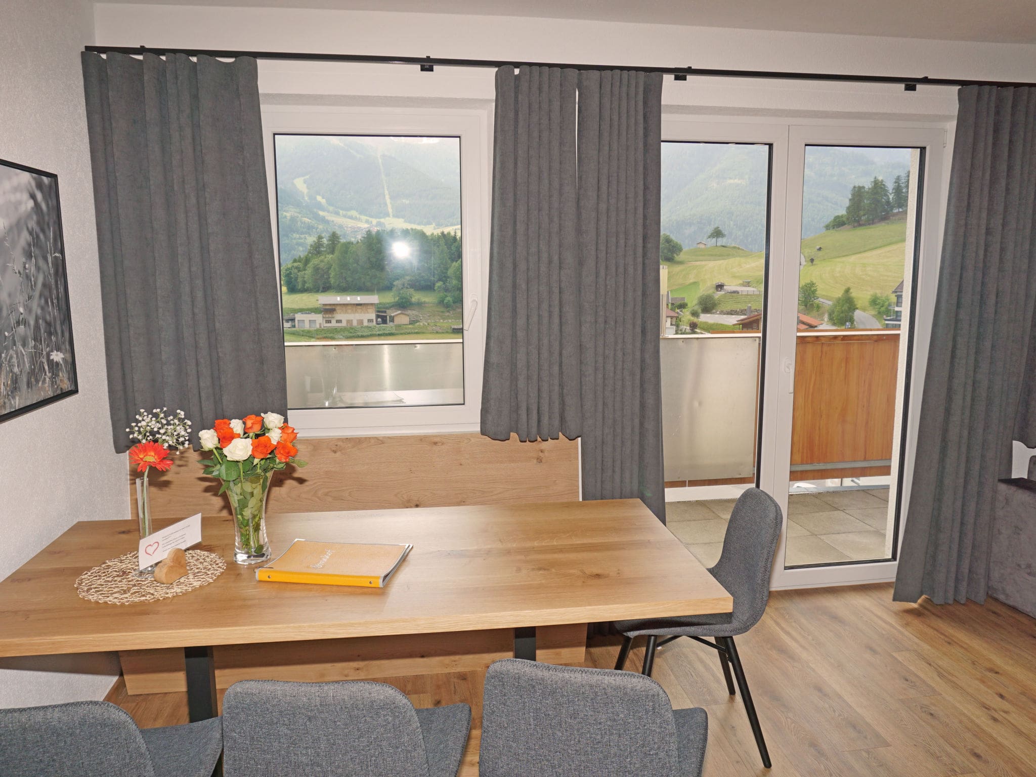 A private 10-square-meter terrace extends the living space outdoors, offering a sunny position perfect for morning coffee or evening relaxation. The terrace furniture provides comfortable seating to enjoy the fresh mountain air and peaceful surroundings. The aparthotel’s central yet quiet location on a gentle slope maximizes both convenience and tranquility.