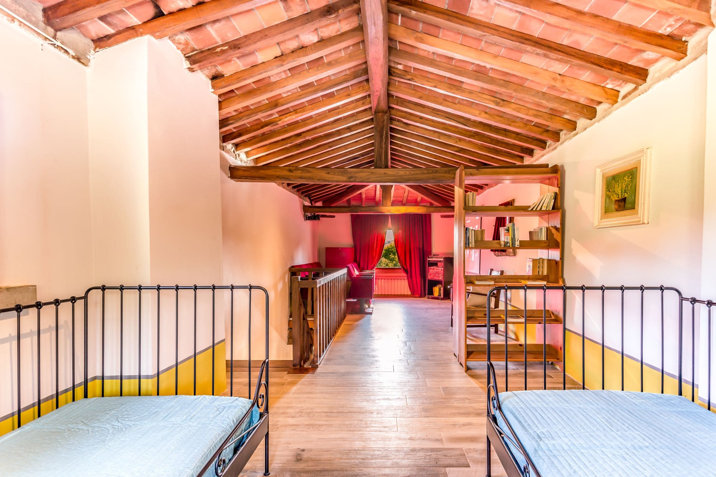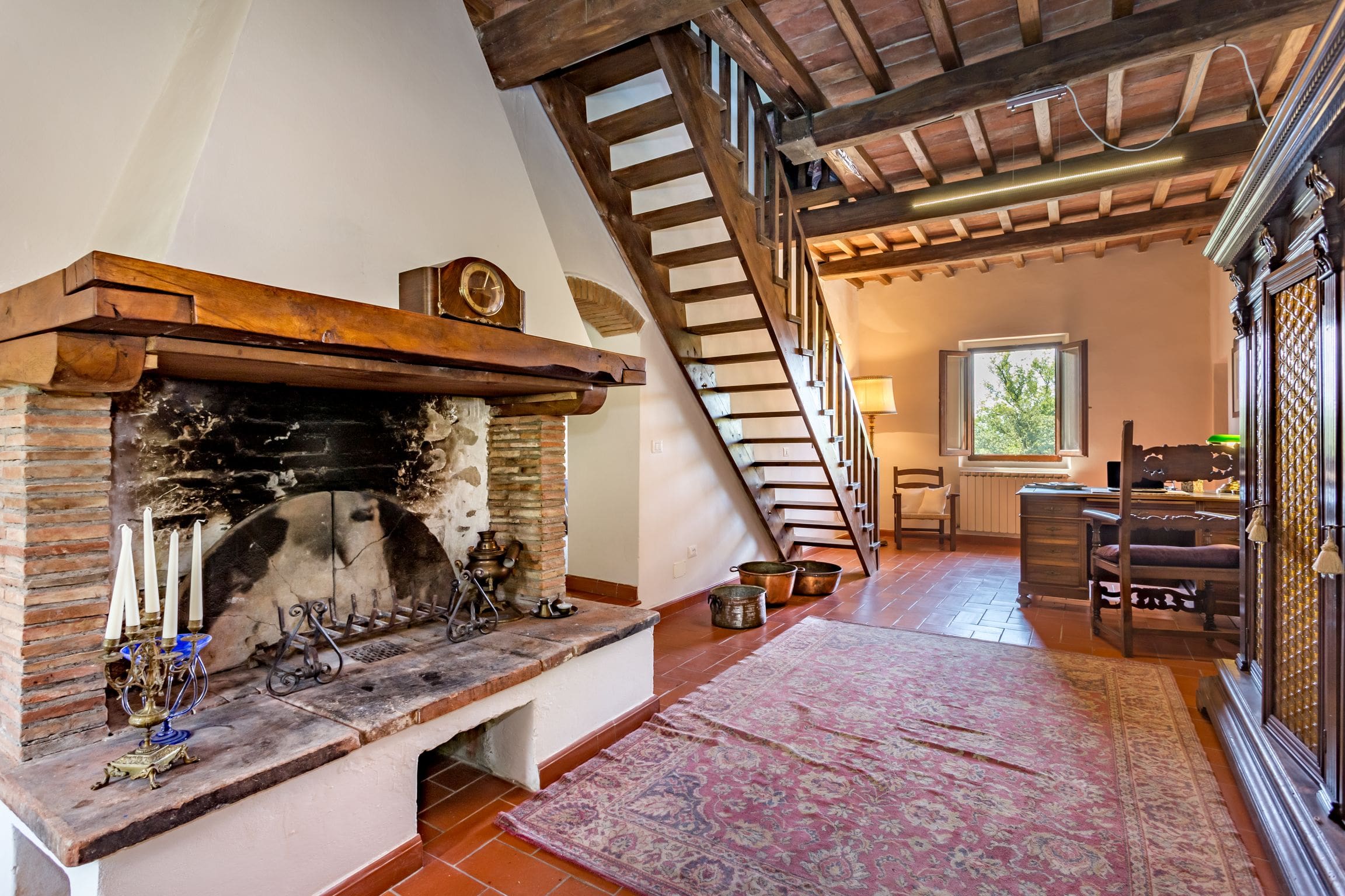 Step inside to discover a beautifully appointed interior spread across three floors, designed to accommodate up to ten guests. The apartment features five spacious bedrooms, each with en-suite bathrooms, ensuring privacy and comfort. The living areas are adorned with original features that reflect the rich history of the region, while the fully equipped kitchen provides everything you need to prepare a Tuscan feast.