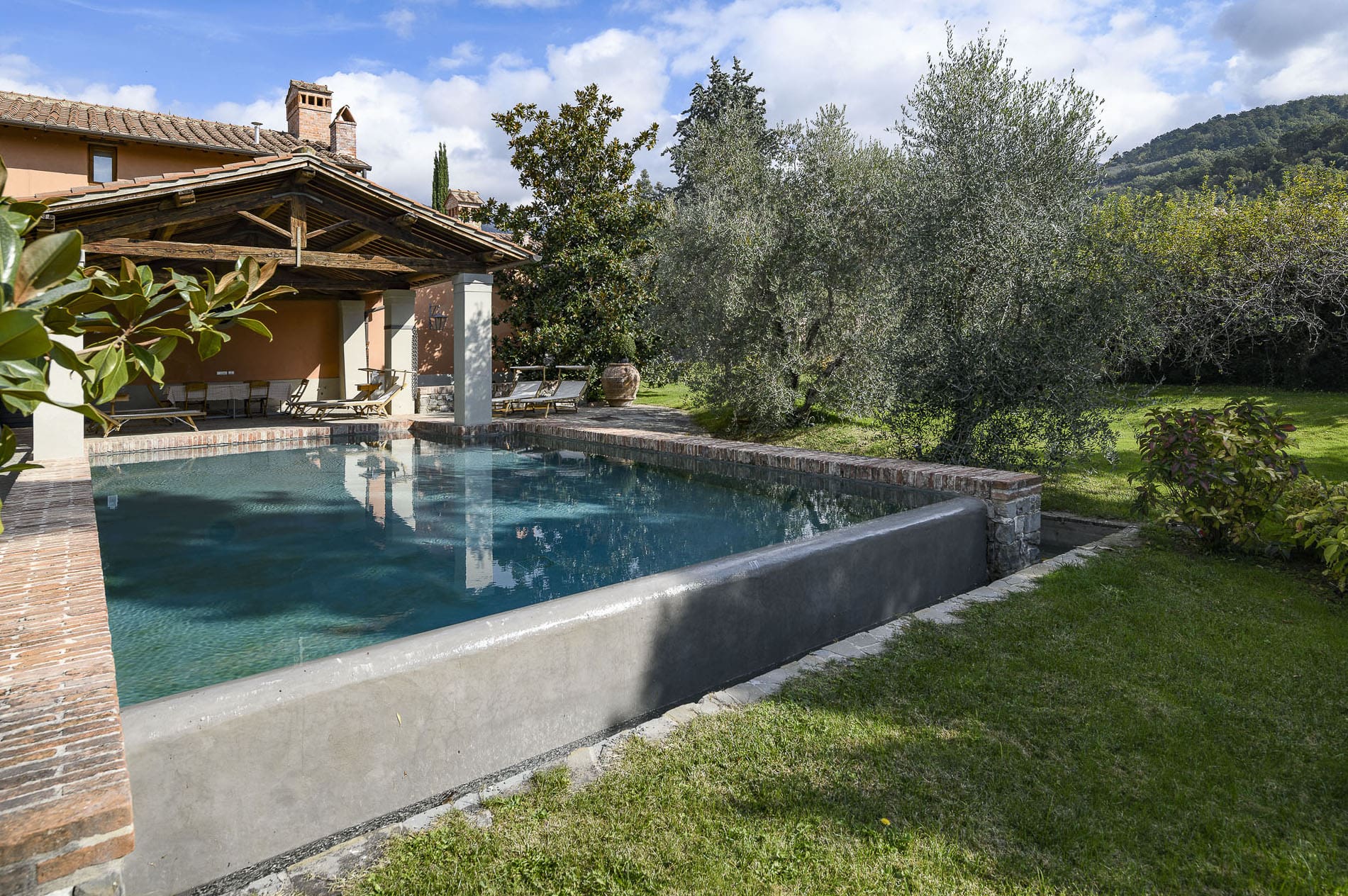 This Florence East apartment accommodates up to 8 guests in its 4 bedrooms, with 4 bathrooms and ample parking. Pets are welcome, and the air-conditioning is available in all bedrooms. The private pool and shared grounds enhance the experience, making it a perfect retreat. Browse our luxury villa rentals in Italy for more properties.