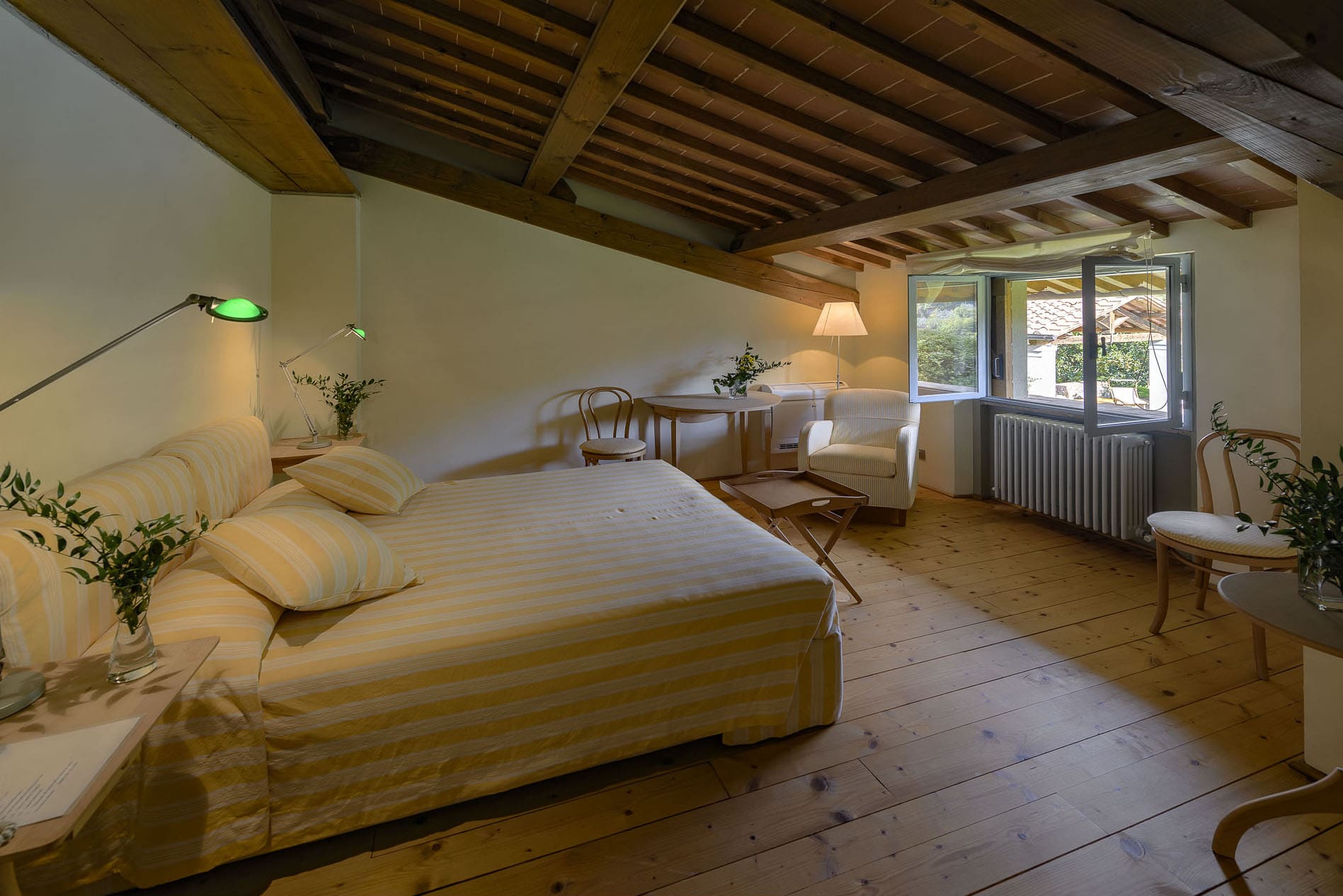 Outside, the property boasts a private swimming pool, open from May to mid-November, where you can bask in the Tuscan sun or enjoy a refreshing dip. The beautifully landscaped gardens and terraces offer ample space for outdoor dining and relaxation, surrounded by the picturesque rolling hills of the Tuscan countryside. Whether you’re savoring a morning espresso or an evening glass of Chianti, the outdoor spaces provide a perfect backdrop for every moment.