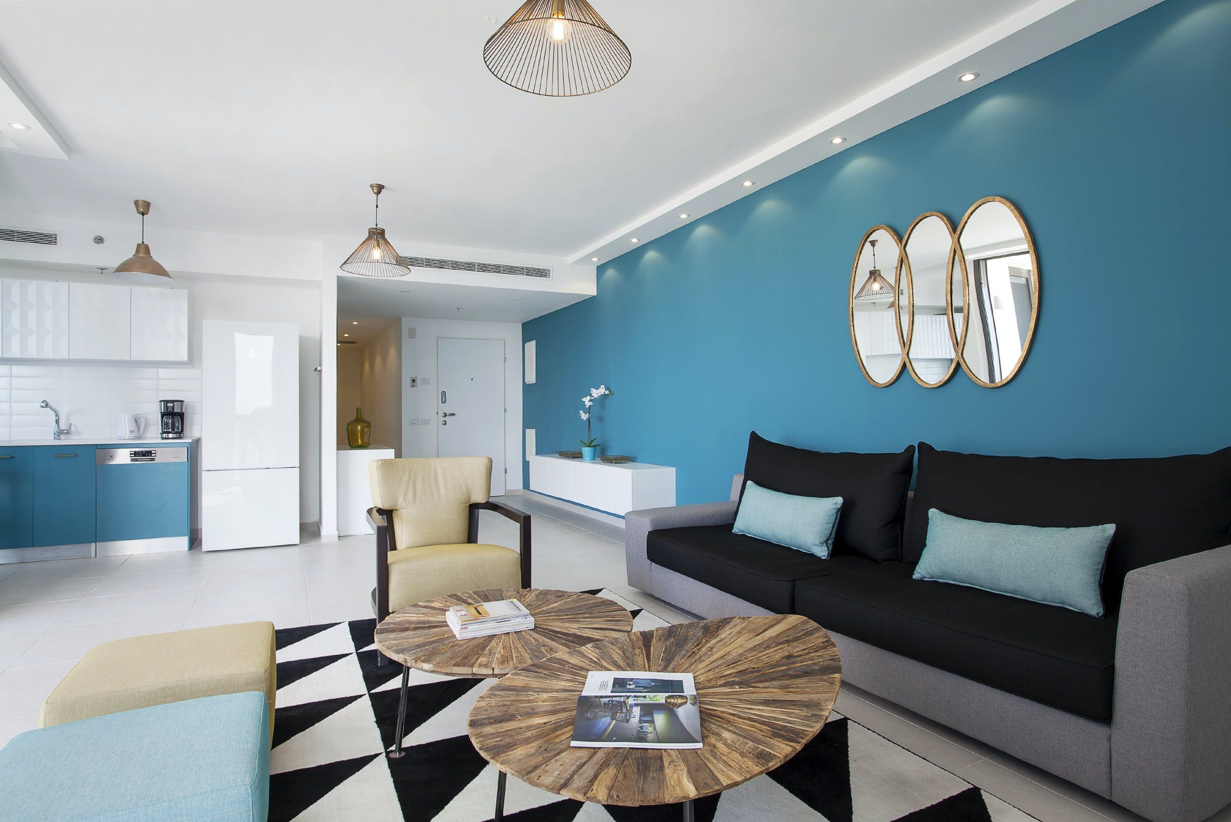The apartment’s balcony is a perfect spot for al fresco dining, providing stunning seaviews as a backdrop. Here, you can enjoy breakfast under the morning sun or unwind with an evening drink, soaking in the vibrant atmosphere of Tel Aviv.