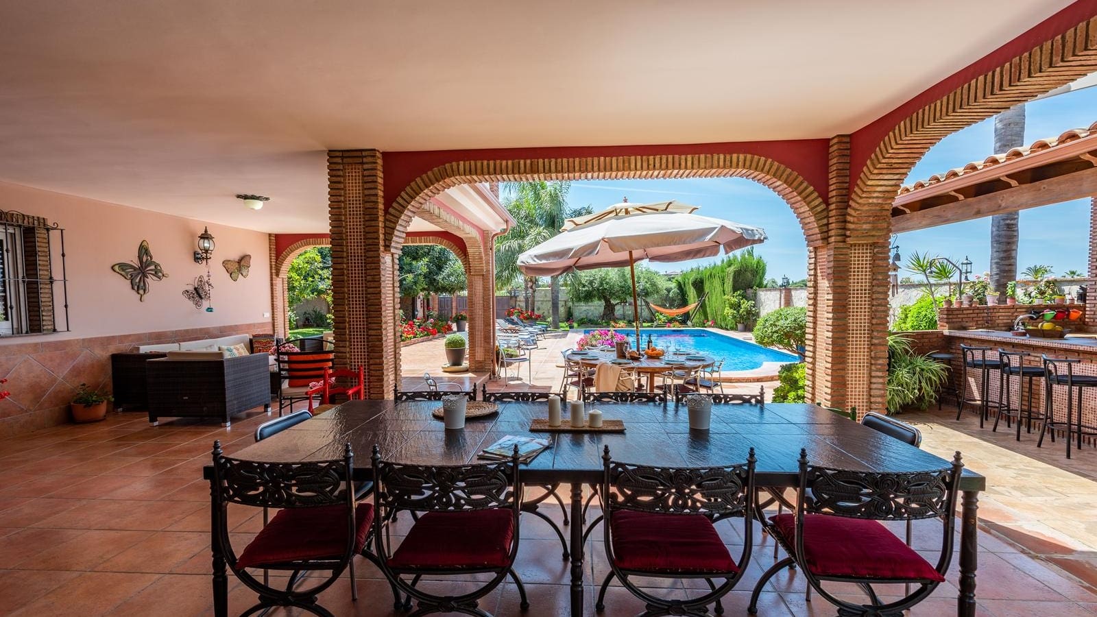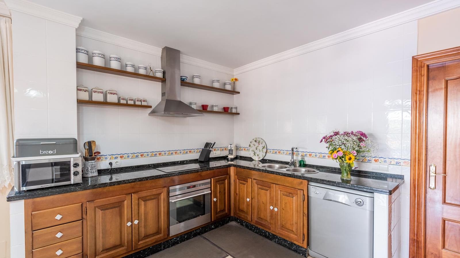 Outside, the apartment’s terraces provide the perfect backdrop for al fresco dining or simply soaking in the panoramic mountain views. The private swimming pool beckons for leisurely swims under the Andalusian sun. While some terraces and tilework show their age, the charm of this setting is undeniable, offering a peaceful retreat amidst nature.