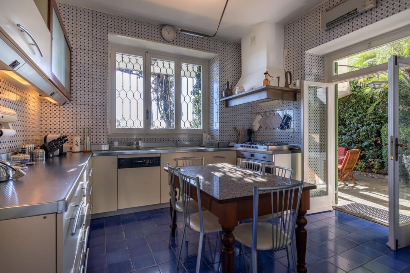 The interiors of this Genoa apartment are a testament to Italian craftsmanship, featuring rich fabrics, colorful tiles, and an abundance of natural light. Each of the five bedrooms is designed with comfort in mind, providing a serene escape for guests. The main bedroom is a standout, boasting two private terraces that offer exquisite views. A conservatory turned games room adds a playful touch, while the spacious kitchen is perfect for preparing gourmet meals.