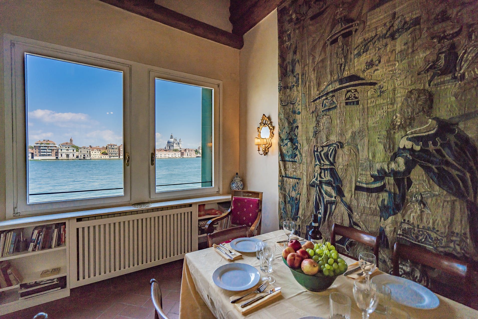 This Giudecca Apartment is ideal for families seeking a cultural Venetian escape, groups of friends wanting a scenic Italian holiday, art enthusiasts inspired by the historical decor, and remote workers desiring a unique backdrop for productivity.