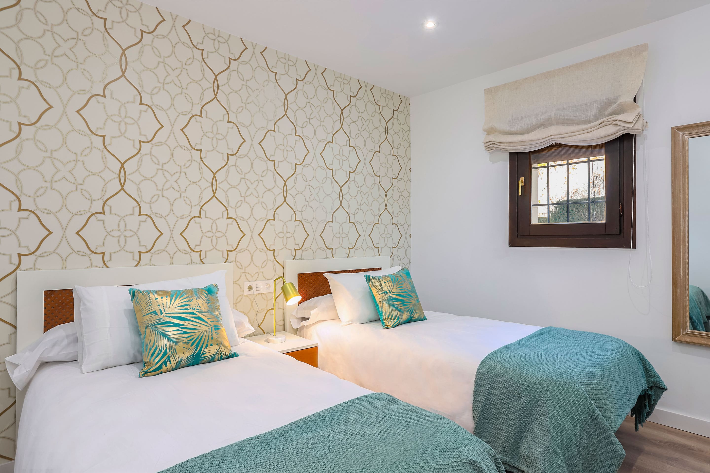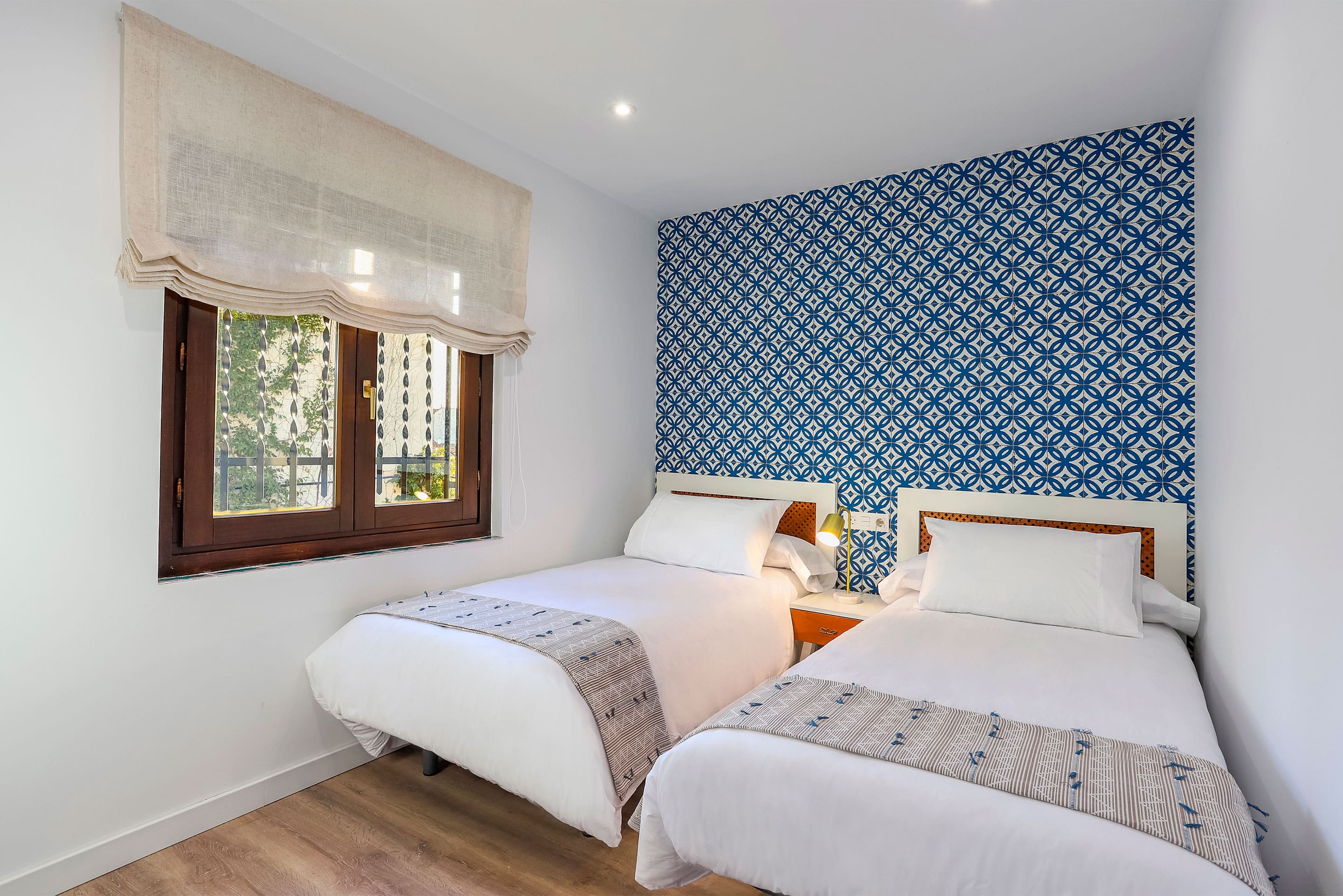 Step inside this beautifully appointed apartment, where traditional Spanish architecture meets contemporary design. The single-story layout features intricate tiling throughout the kitchen and dining areas, setting a warm and inviting tone. Each of the four bedrooms is thoughtfully designed with minimalist decor and chic lighting, providing a serene space for relaxation. The spacious living area, adorned with an eclectic mix of antique furnishings, offers a cozy spot for gatherings. With three well-appointed bathrooms, guests will enjoy ultimate convenience and privacy.