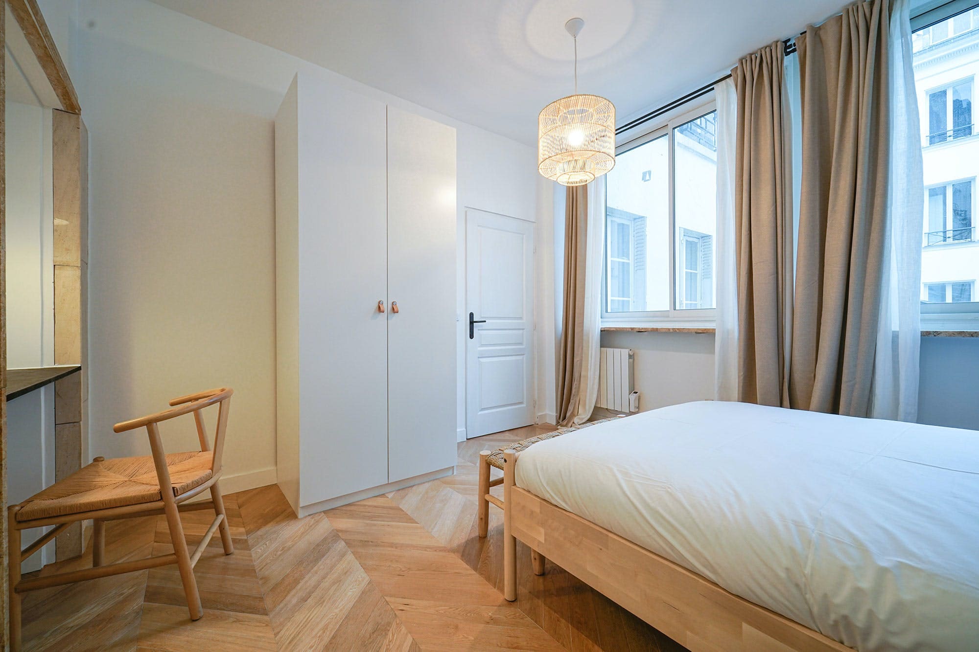 While the apartment does not boast outdoor spaces, its prime location in the Grands Boulevards neighborhood means Paris’s vibrant streets serve as your extended living area. Explore charming cafes and bistros just steps away, and soak in the quintessential Parisian atmosphere.