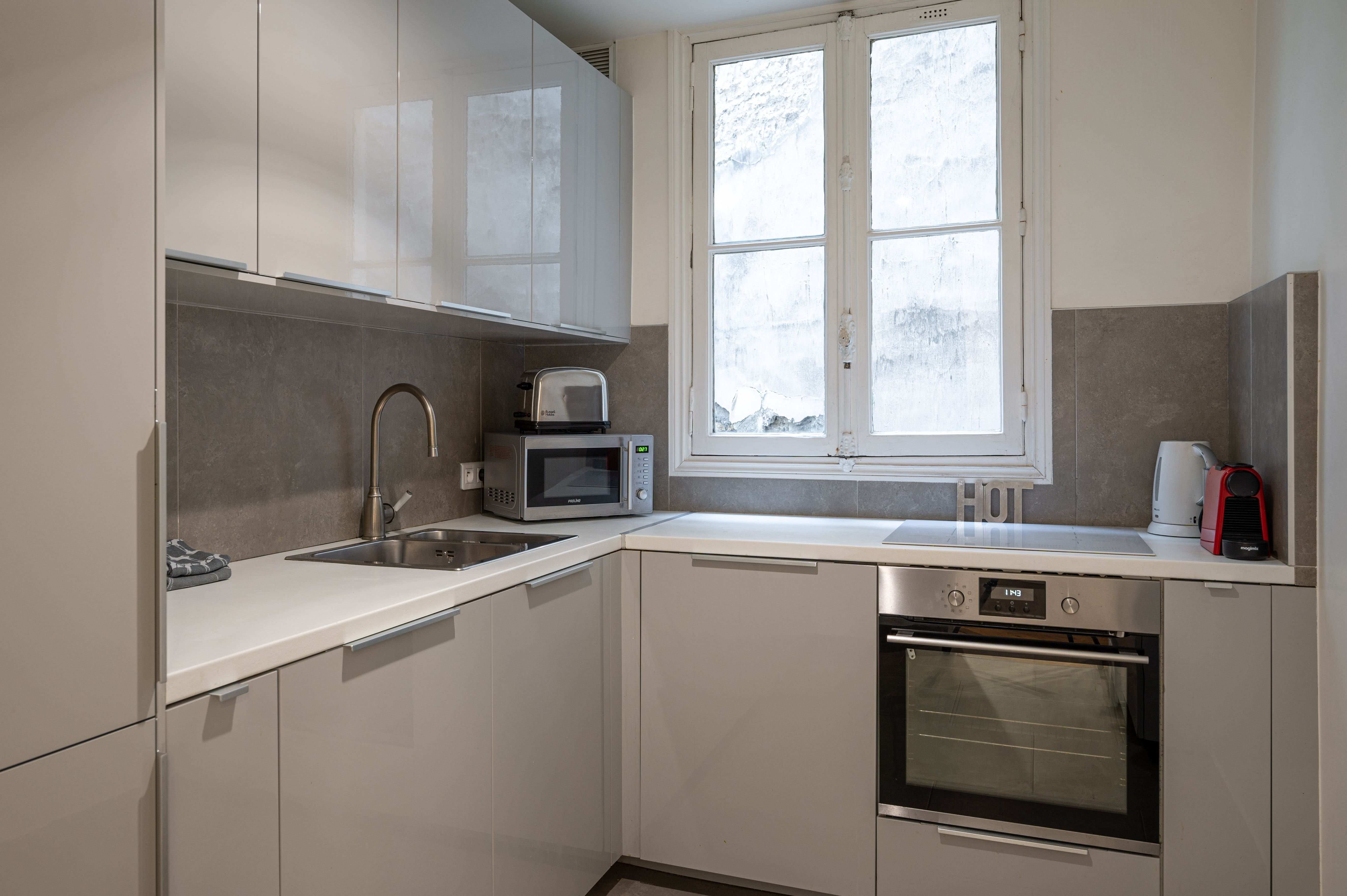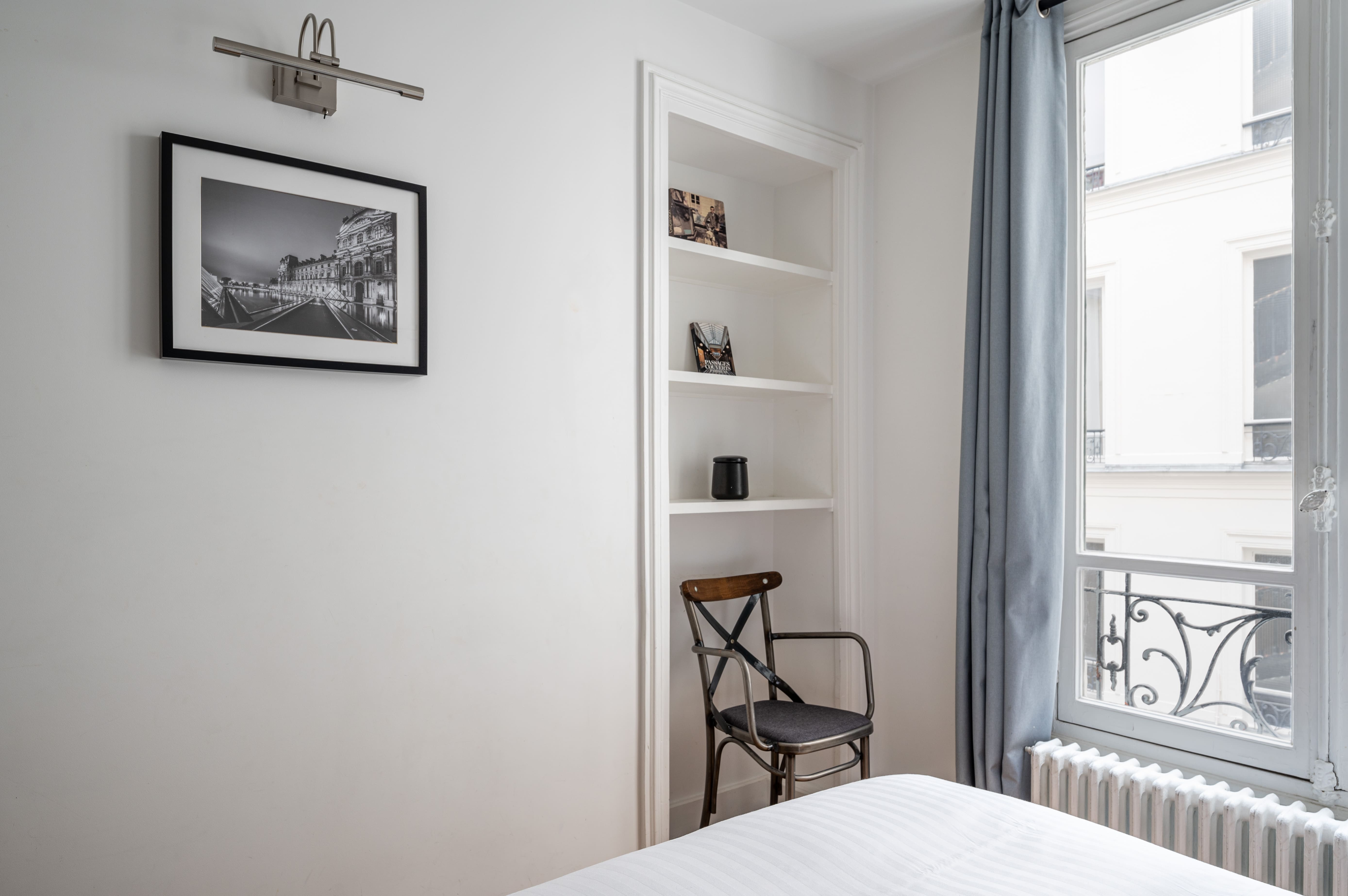 While the apartment doesn’t feature an outdoor garden, the charming courtyard offers a peaceful retreat from the bustling city streets. Just a short stroll away, Square Montholon provides a lovely green space adorned with marble statues, ideal for leisurely walks. The picturesque setting of the Grands Boulevards district places you amidst a variety of cultural and culinary experiences.