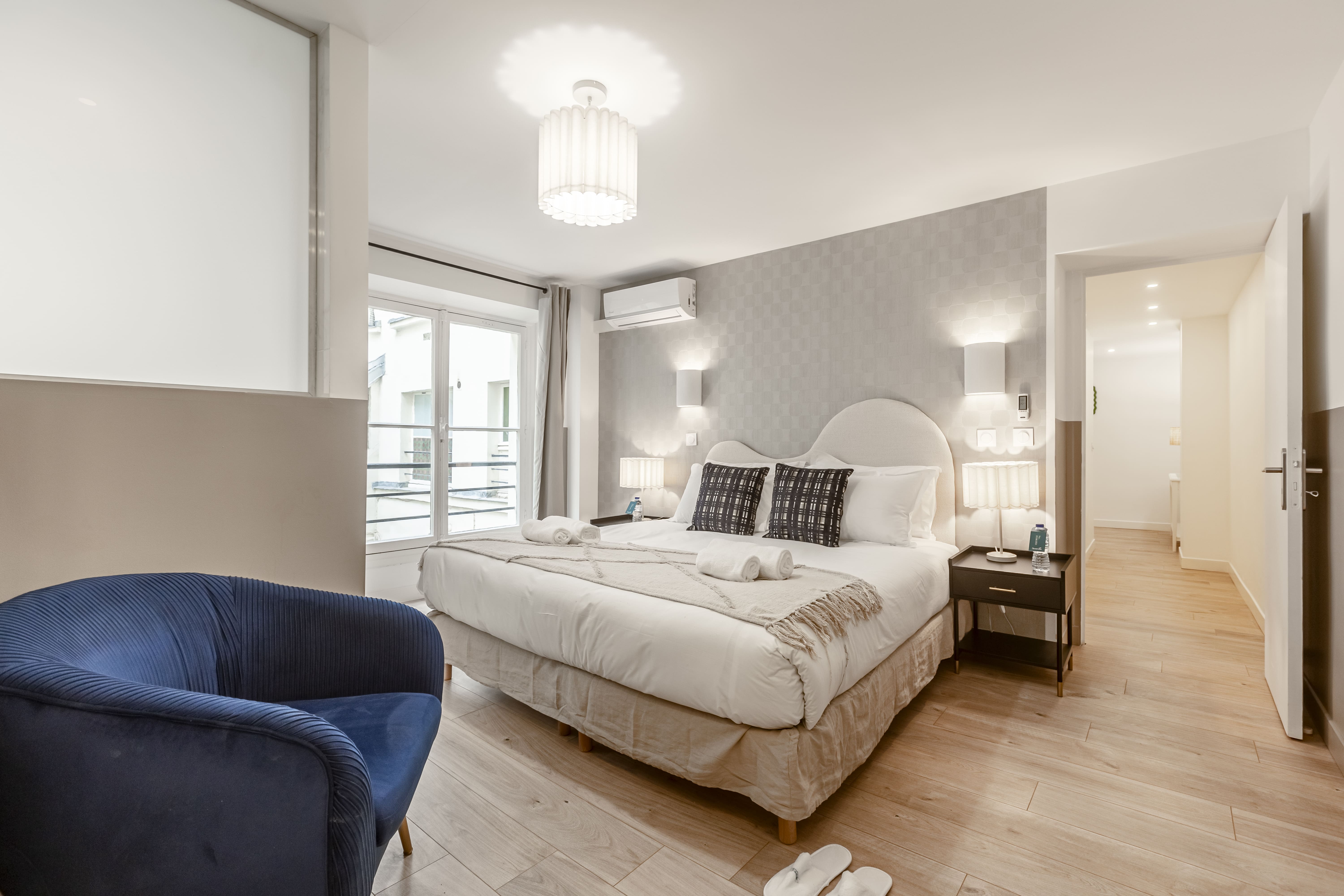 Experience the epitome of Parisian elegance with our luxury apartment rental in Paris, situated in the lively Grands Boulevards district. This exquisite property offers a perfect blend of modern comfort and classic charm, making it an ideal retreat for those seeking an authentic Parisian experience.