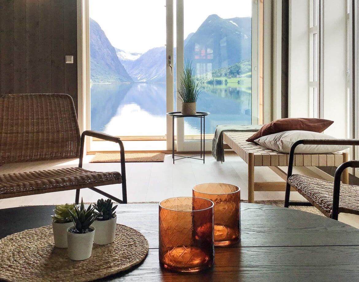 Good night’s rest is assured by the comfy bedrooms, and kids will love the bunk beds. Wake up refreshed and ready for another day of adventures in this beautiful natural setting – hire a boat and head out on the lake, or try your hand at fishing right from the lakefront. Venture further out and discover the area’s rich tradition of arts and crafts, explore the picturesque villages of Helgheim, Ålhus, Vassenden, and Langhaugane, and hike in the ancient woodland.