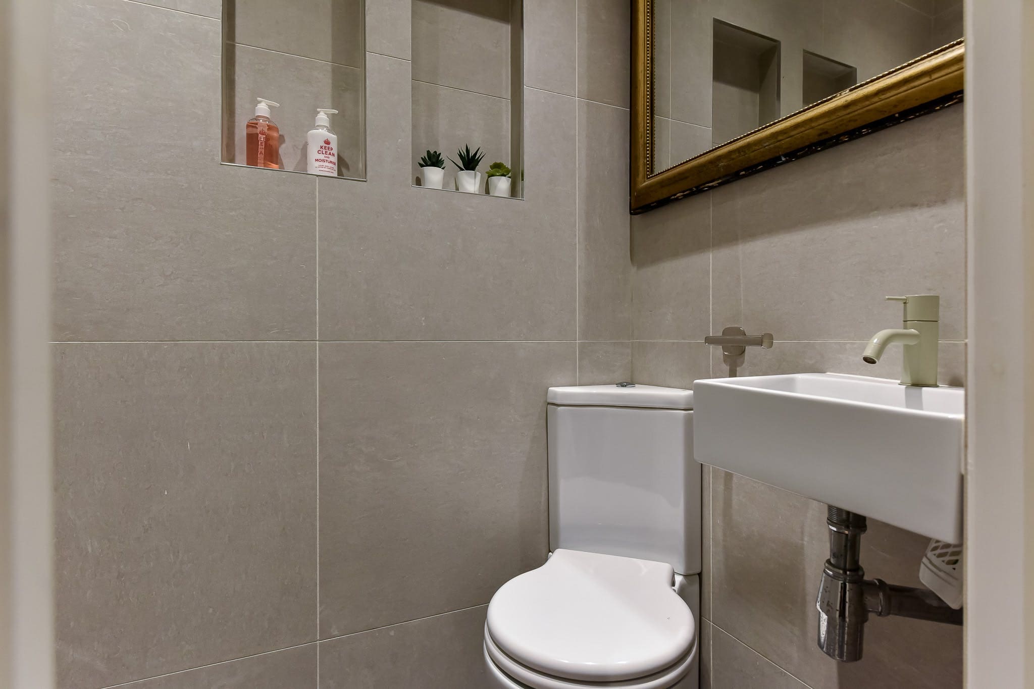 Step inside to find a beautifully curated interior spread over three floors. The ground floor welcomes you with a spacious lounge, featuring contemporary artwork and a unique walk-on glass floor panel. The modern kitchen is well-equipped, making it ideal for culinary enthusiasts. Each of the two en-suite bedrooms offers privacy and comfort, perfect for unwinding after a day of exploring the city. A dedicated office space ensures you can seamlessly integrate work and leisure during your stay.