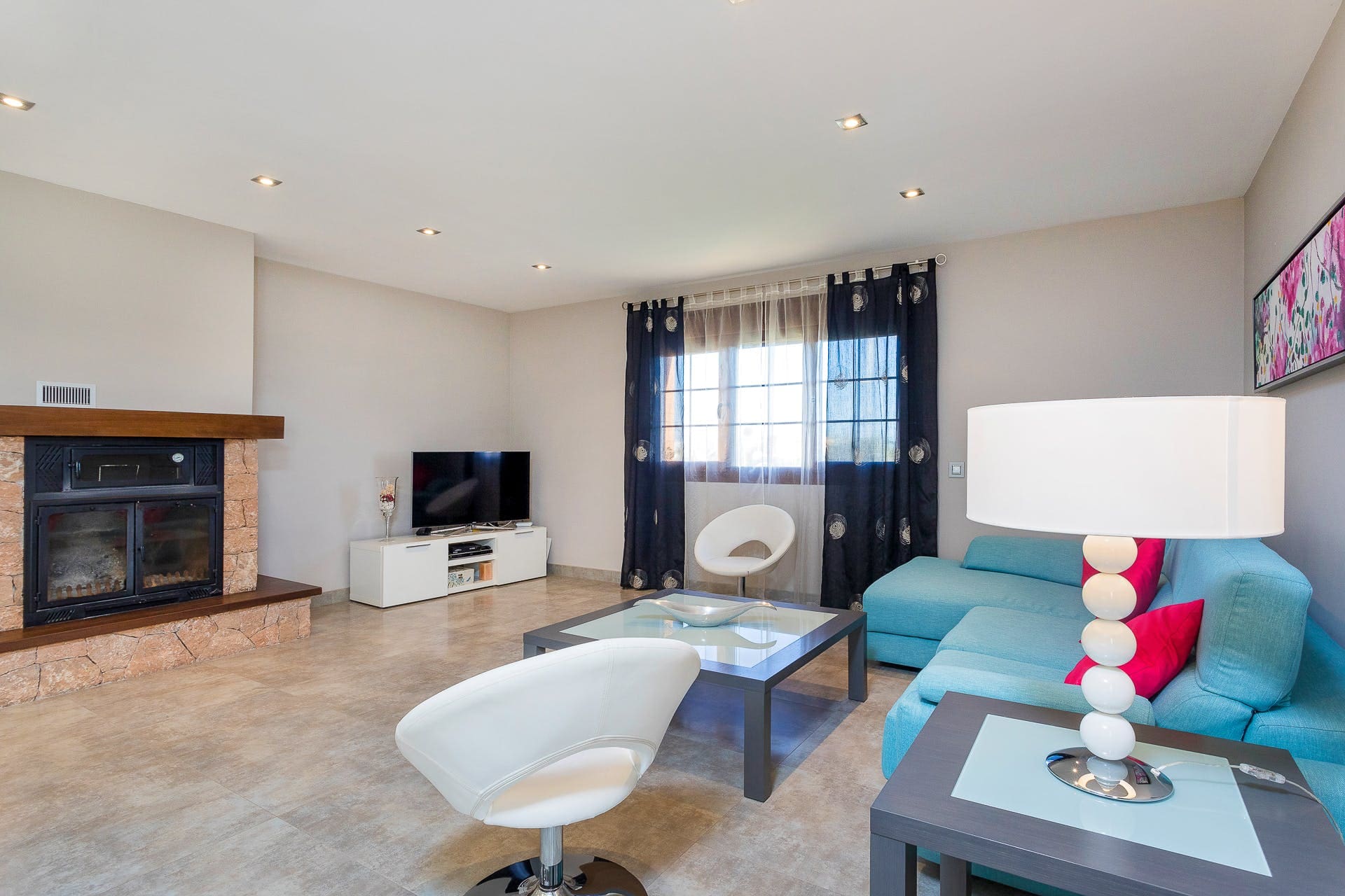 The interior of this stunning apartment exudes sophistication, featuring two adjoining villas that provide ample space and privacy. Each villa boasts its own fully equipped kitchen and living area, perfect for large groups or families. Plush furnishings and a chic design aesthetic run throughout, with a cozy lounge in the main villa offering a fireplace for cooler evenings. The bedrooms are elegantly appointed, ensuring restful nights after days spent exploring Ibiza.