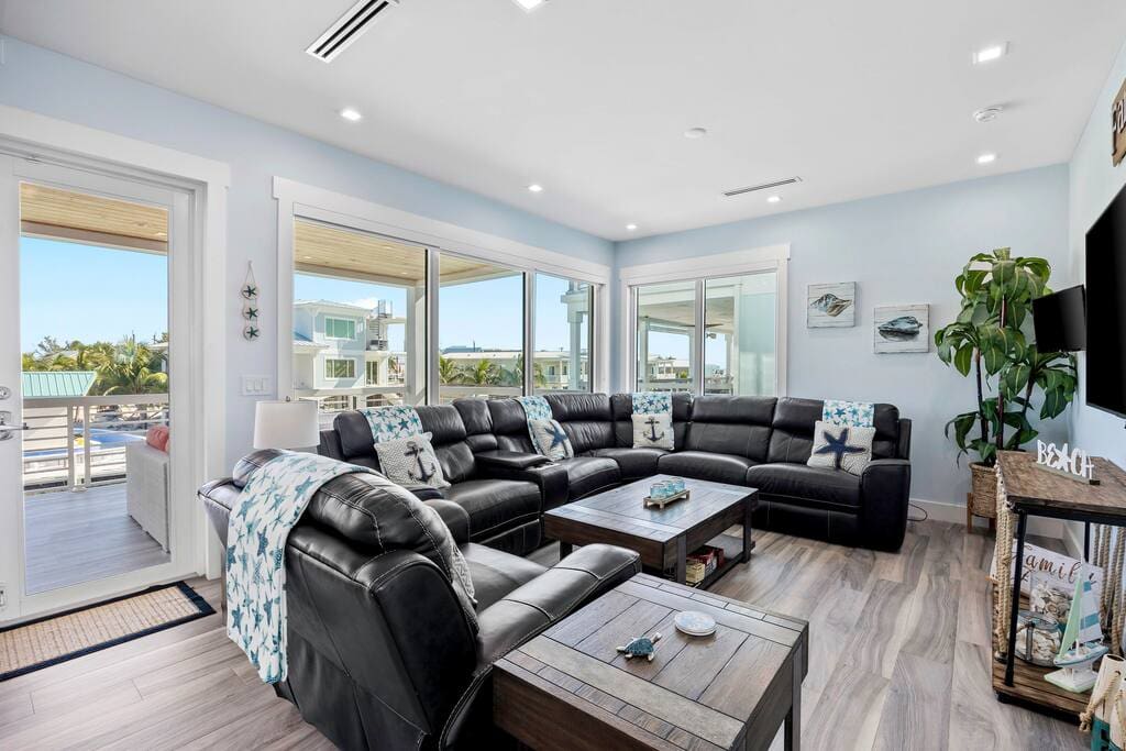 Step into a world of refined tranquility as you enter this luxury villa in Islamorada. The interior boasts a seamless blend of modern design and coastal charm, featuring spacious living areas bathed in natural light. The gourmet kitchen, equipped with top-of-the-line appliances, is a chef’s dream, while the open-plan living room offers plush seating and panoramic views of the sea. Upstairs, four beautifully appointed bedrooms provide a peaceful haven, each with its own en-suite bathroom, ensuring privacy and convenience for all guests. An additional loft living room serves as a versatile space, complete with a double sofa bed, ideal for extra guests or a cozy retreat.