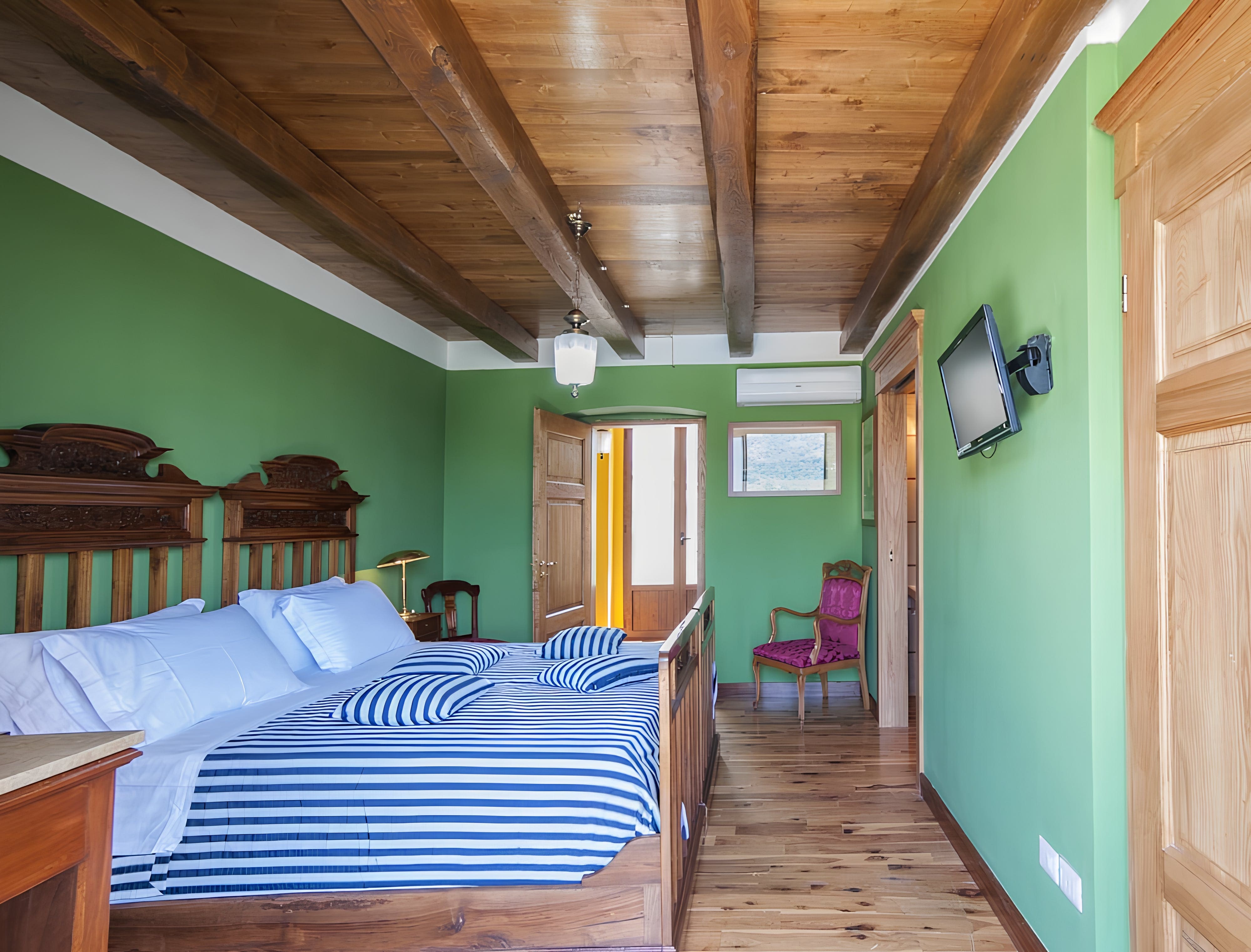 A: The property includes air conditioning, BBQ facilities, and a private swimming pool.