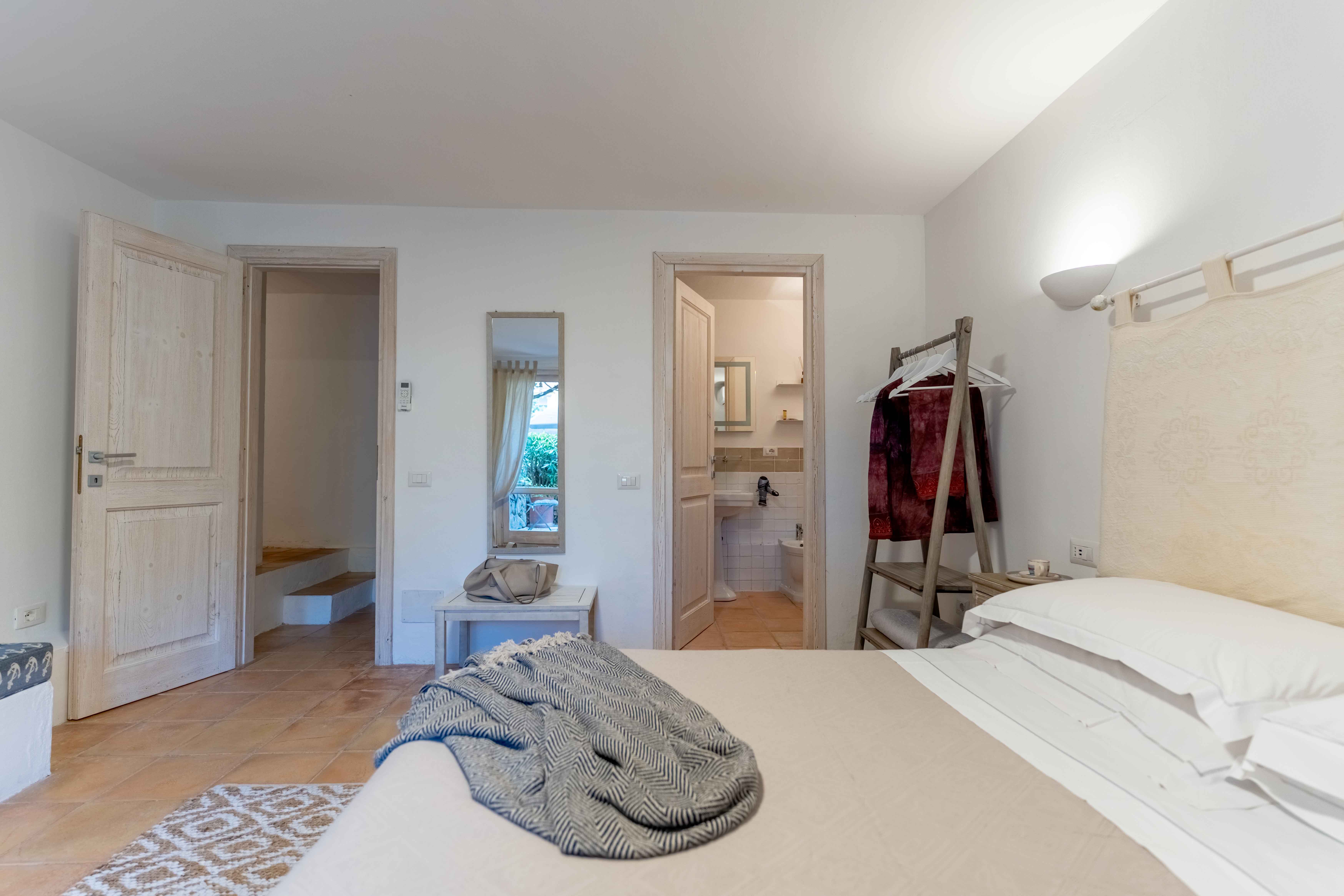 The villa’s outdoor spaces are a testament to Sardinia’s natural beauty. With stunning views of Porto Rotondo, guests can relax by the five-by-four-meter swimming pool, open from April to October, or enjoy al fresco dining with the BBQ facilities. The lush gardens, dotted with vibrant flowers and granite walls, offer a peaceful retreat for sunbathing or leisurely strolls.