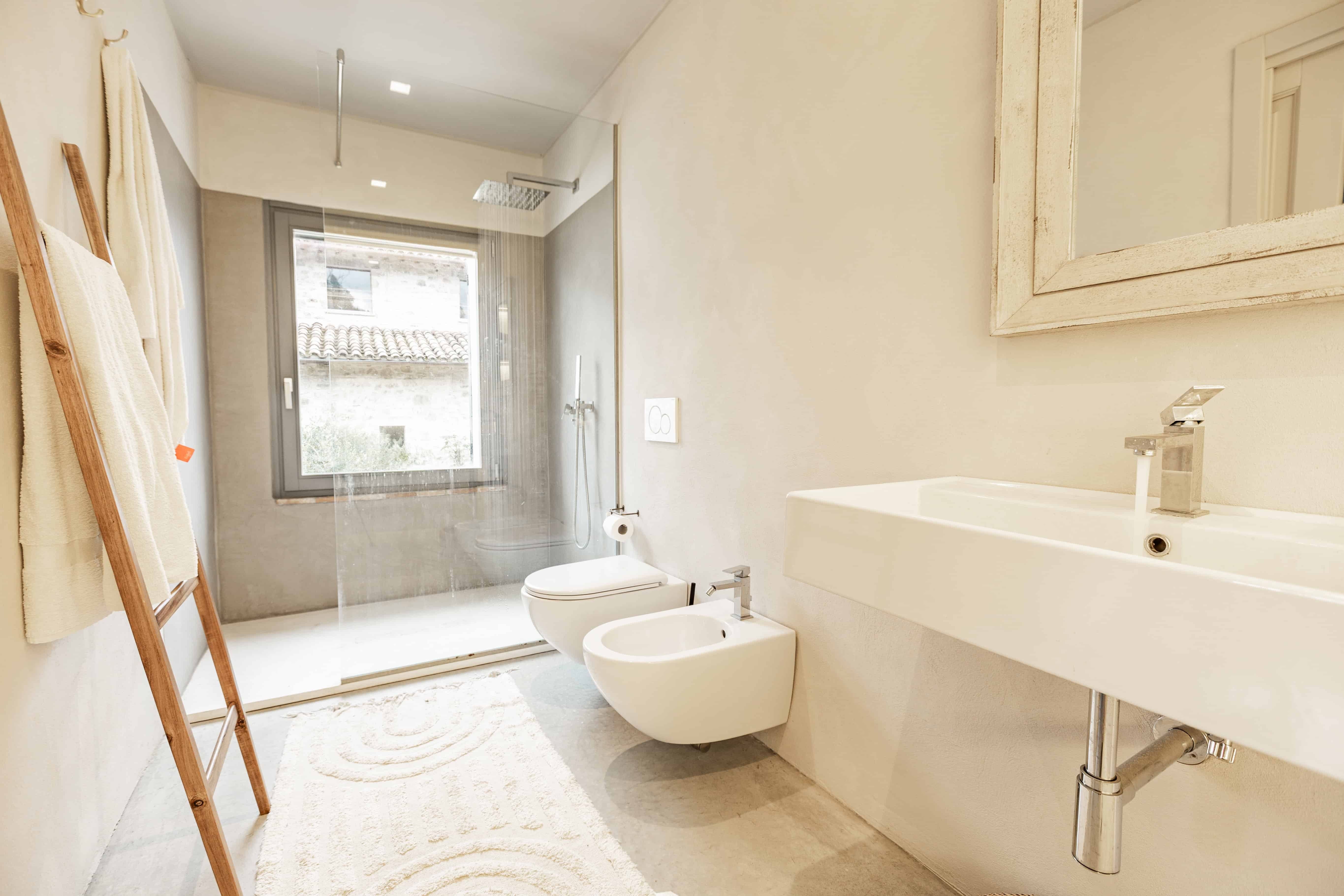 Within Casa Faggio Todi, the interiors are a seamless blend of rustic charm and modern elegance. The main house and guest house are thoughtfully spread across multiple levels, connected by graceful staircases. Each of the five bedrooms is a personal oasis with en-suite bathrooms, ensuring comfort and privacy for all guests. The living areas and kitchen are designed for both relaxation and entertainment, with expansive windows offering picturesque views of the Umbrian landscape.