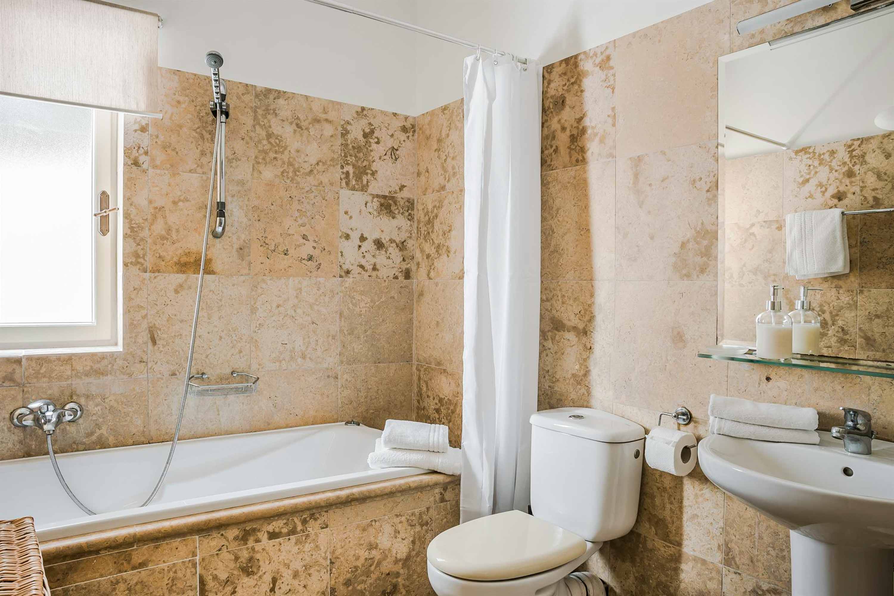 The apartment accommodates up to 10 guests across five bedrooms and six bathrooms. Free private parking is available, and while the property spans two floors, ground-floor bedrooms are accessible for guests with reduced mobility. Browse our luxury villa rentals in Greece for more options.