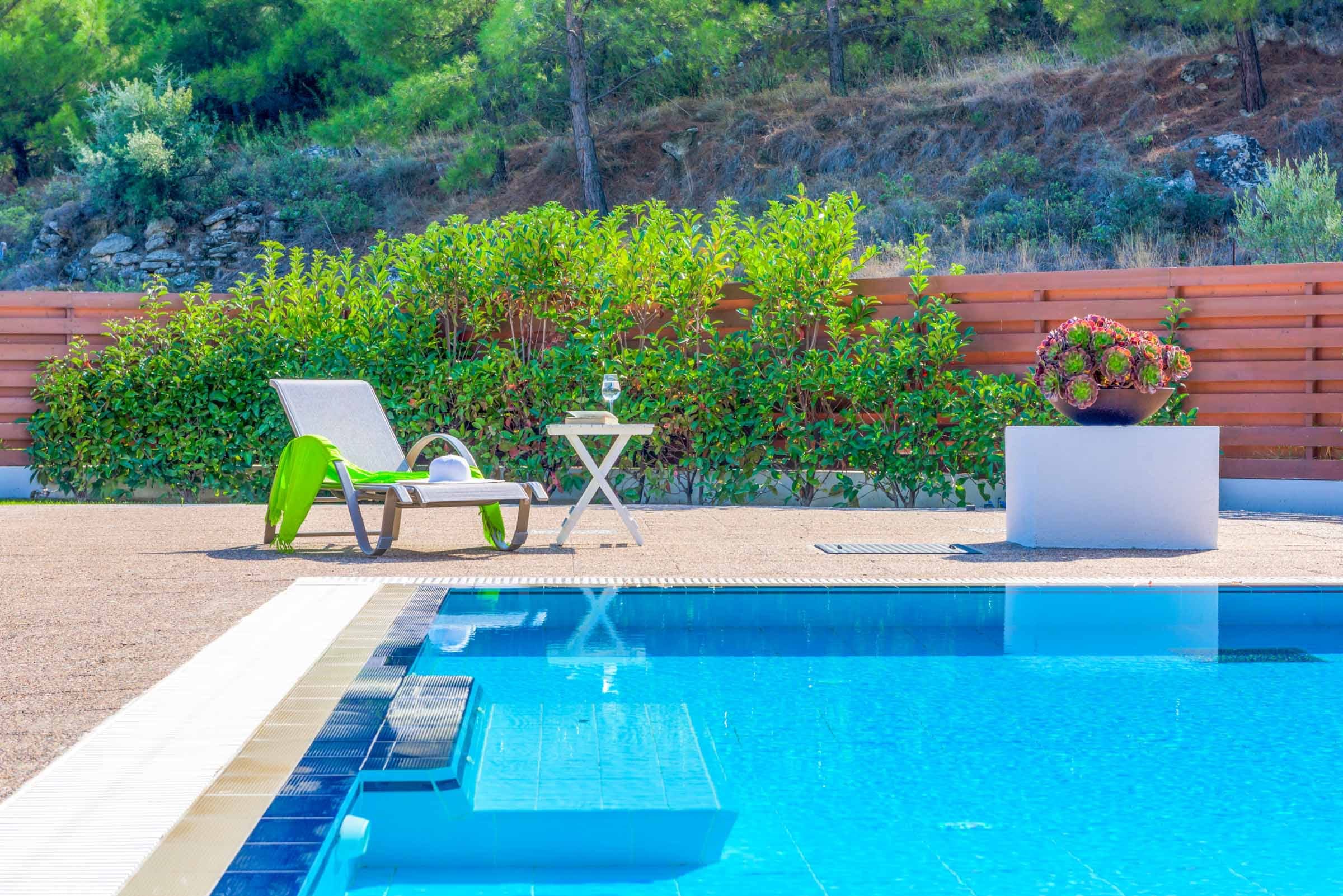 With a capacity for six guests, this apartment features three bedrooms and two bathrooms. Free parking is available, and hiring a car is recommended to explore the local area. Note that the swimming pool is not fenced, so supervision is required for children. Browse our luxury villa rentals in Greece for more properties.
