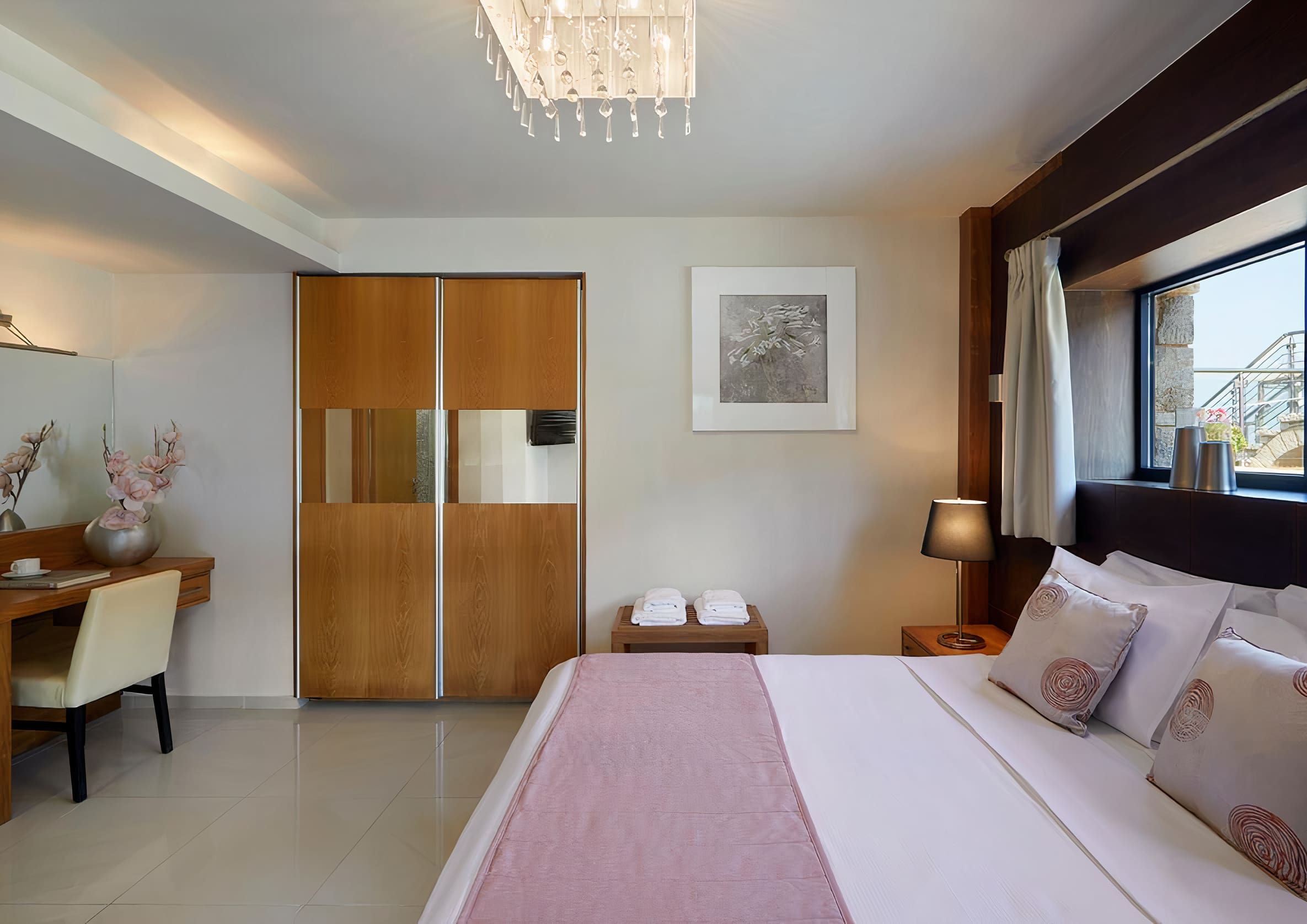Step into a world of elegance and comfort as you explore the interiors of this luxury apartment. With two spacious bedrooms and two pristine bathrooms, the apartment comfortably accommodates up to four guests. The modern design is complemented by chic, sophisticated décor, creating a space that’s both stylish and inviting. The open-plan living area offers ample space for relaxation, while the state-of-the-art kitchen is equipped with everything you need to prepare delightful meals. Whether you’re lounging in the cozy living room or enjoying a meal at the dining table, you’ll be surrounded by tasteful design and high-end finishes.