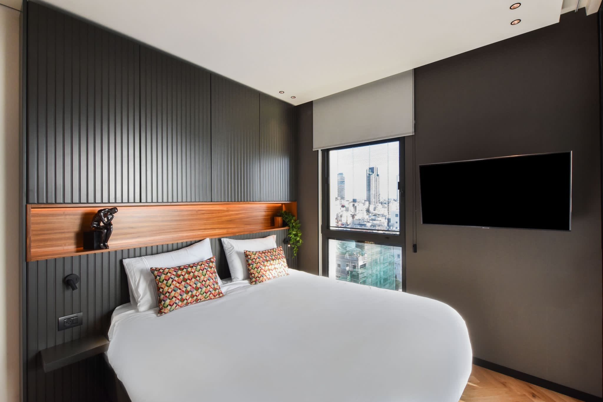 Enjoy breathtaking views from the apartment’s private balcony, where alfresco dining becomes a daily pleasure. Just a short walk away, Geula Beach invites you to unwind on its golden sands, while the lively streets of Tel Aviv promise endless exploration. The shared gym within the building provides an opportunity to maintain your fitness routine during your stay.