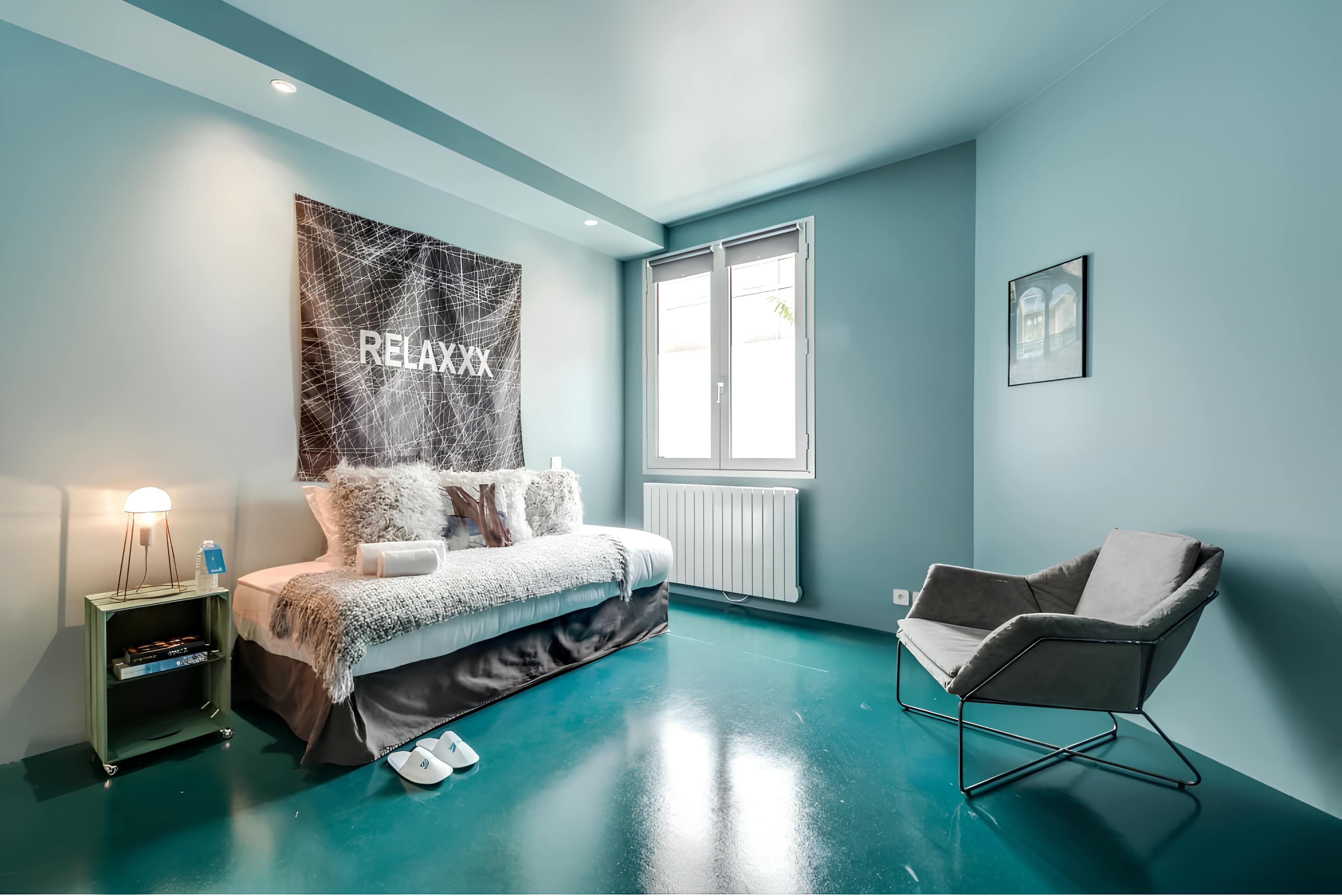 Step inside this beautifully designed apartment, featuring an open-plan living space that embraces modernity with a touch of classic Parisian flair. The bold interior style creates a cozy yet sophisticated atmosphere, perfect for unwinding after a day of exploration. With two well-appointed bedrooms and a spacious living room that includes a sofa bed, this home can comfortably accommodate up to six guests. The kitchen is fully equipped for culinary adventures, and the desk positioned by the window offers a bright spot for remote working.