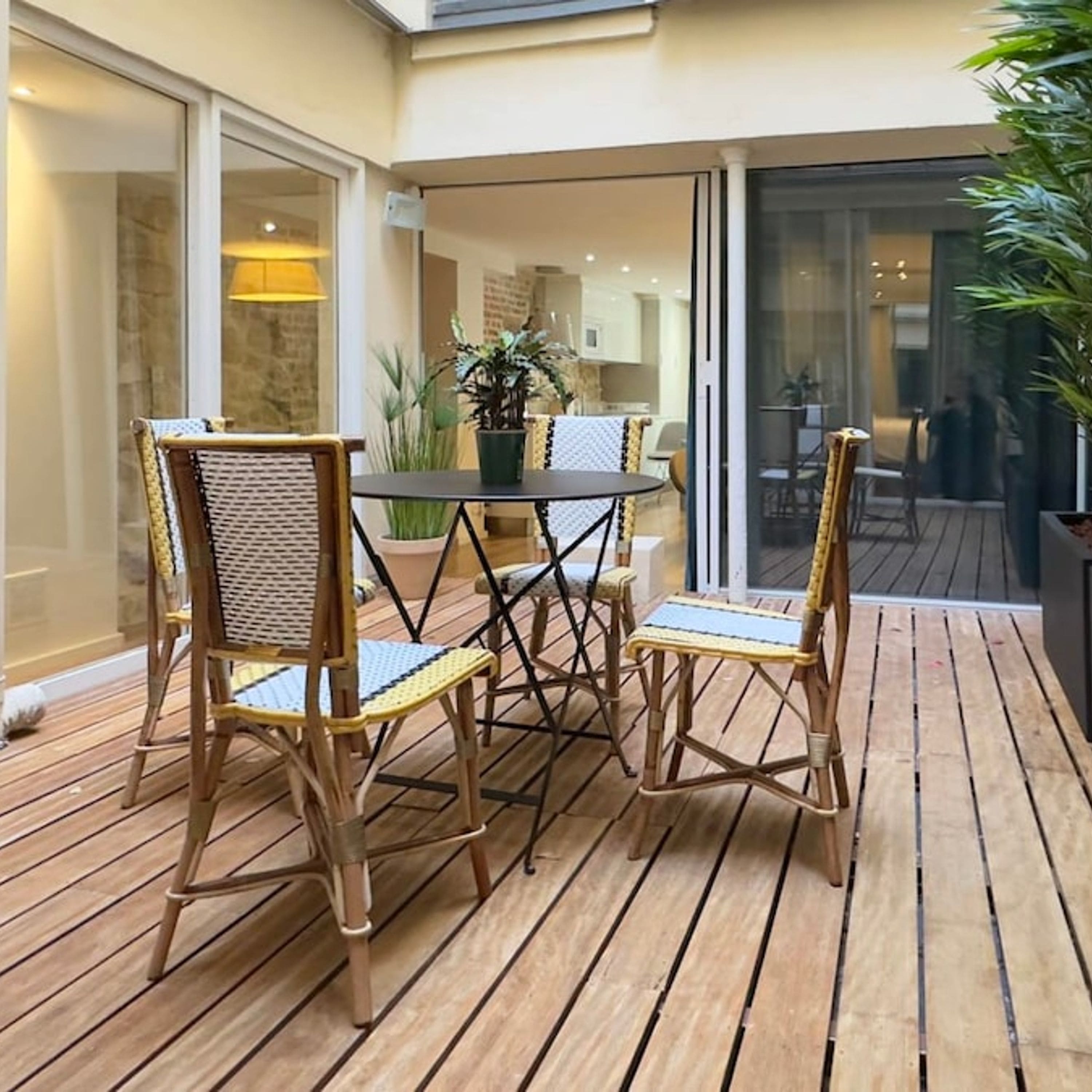 Step outside into a private oasis in the heart of Paris. The villa features an enchanting interior patio adorned with a vertical garden, offering a tranquil escape from the bustling city. This secluded outdoor space is perfect for al fresco dining or simply unwinding with a glass of wine.