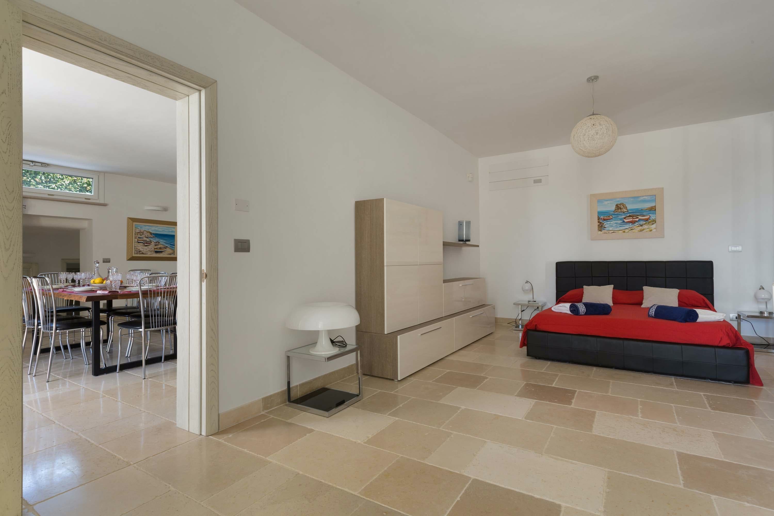 This luxury apartment is an excellent choice for families and groups seeking a spacious and well-appointed base in Apulia. With six bedrooms and four bathrooms, there’s room for everyone to relax and enjoy. The property is child-friendly, and with a baby cot and high chair available at no extra cost, families will find everything they need for a comfortable stay.