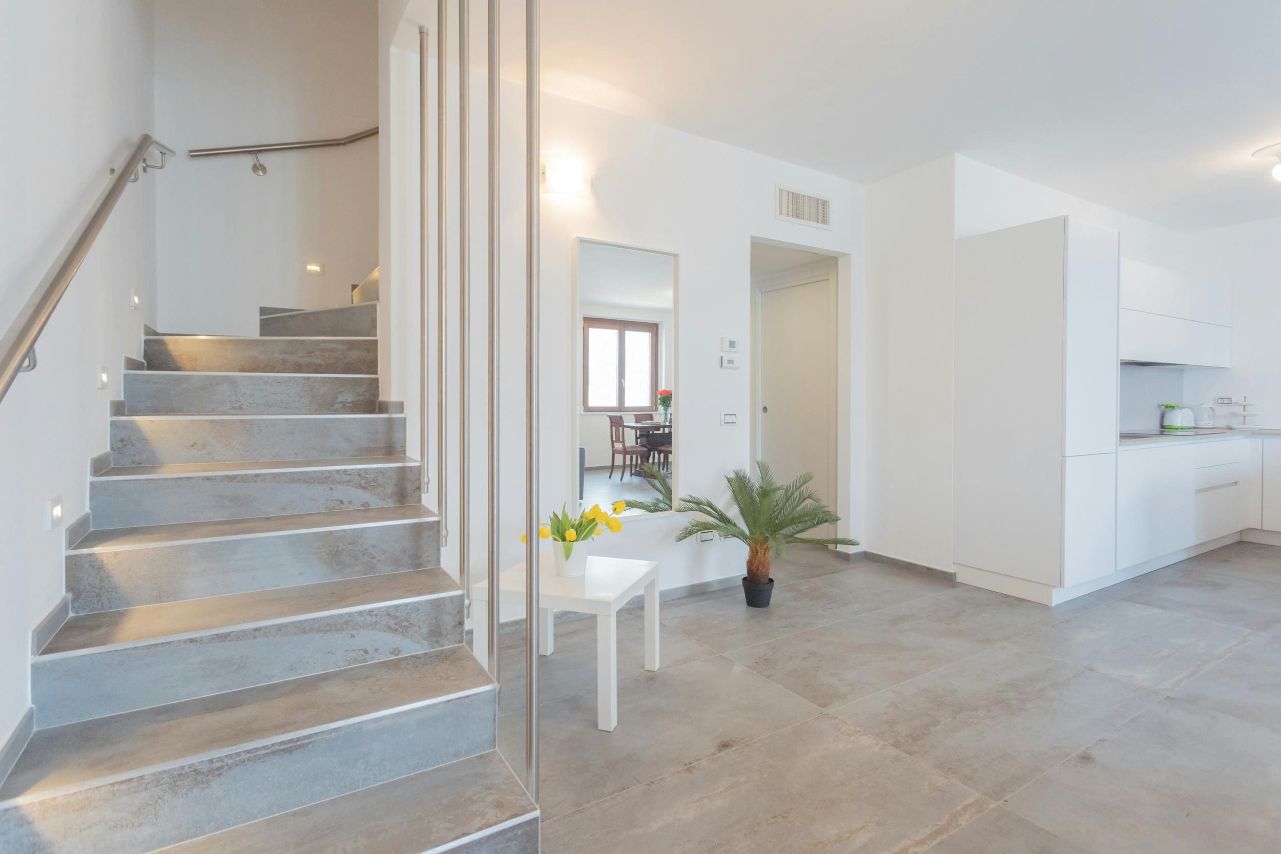 The apartment accommodates up to 12 guests, with four bedrooms and four bathrooms. Parking is conveniently available for guests. Note that the apartments are accessible via external stairs, so mobility considerations should be taken into account. For a wider selection, browse our luxury villa rentals in Italy.