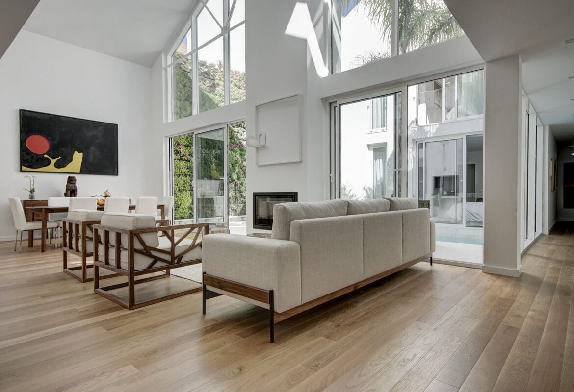 And finally, step outside to your dazzling courtyard complete with a huge swimming pool where you can settle in the sunshine in total privacy! A wall of vibrant plants scales up to one side of the pool generating a wonderfully fresh air and adding a splash of colour to this ultra-modern villa! With temperatures in Lisbon frequently in the high 30s, you’ll relish the chance to dive into your fabulous private pool in the midday heat! The pool is directly accessible on all three sides.