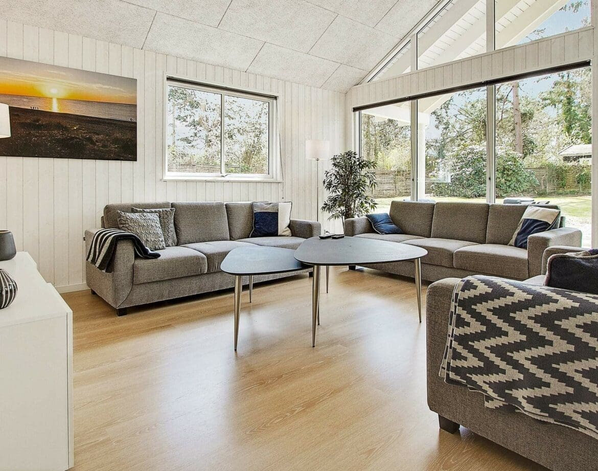 Set against a verdant canvas of lush lawn and foliage, this home exudes tranquillity. Inside, floor-to-ceiling windows beckon you to admire the splendour of your surroundings while ushering in floods of sunlight. With a wealth of amenities – including a pool, sauna, hot tub and games room – it’s the perfect base for families. There’s even a trampoline and jungle gym in the garden for the little ones. We especially love the open-plan living space, with its inviting medley of high ceilings, stylish decor and contemporary appliances. After days on the beach, you’ll be glad to return to this cosy pad, huddled around the crackling wood-burning stove or roosted at the large dining table for a home-cooked feast.