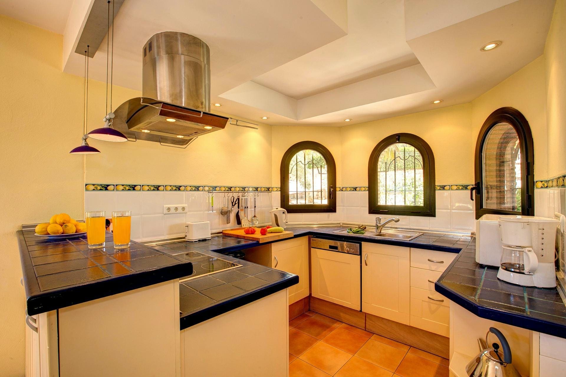 Step inside to find a beautifully designed space that reflects the charm of the Spanish countryside. The apartment boasts five elegantly appointed bedrooms, each with its own en-suite bathroom, ensuring privacy and comfort for all guests. The expansive living area is perfect for unwinding with loved ones, while the fully equipped kitchen invites culinary adventures. With traditional arched windows and terracotta tiles, the interior exudes warmth and elegance.