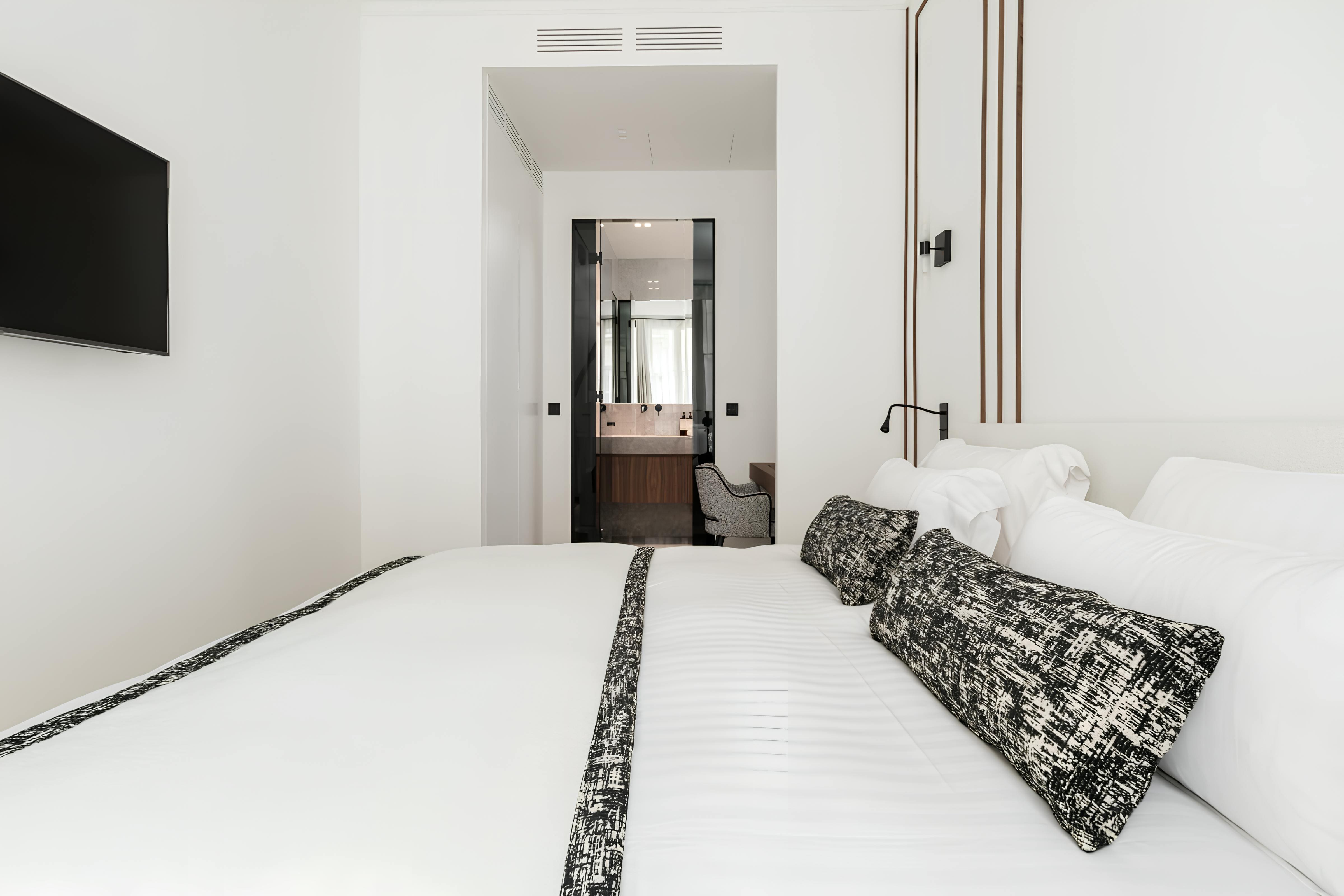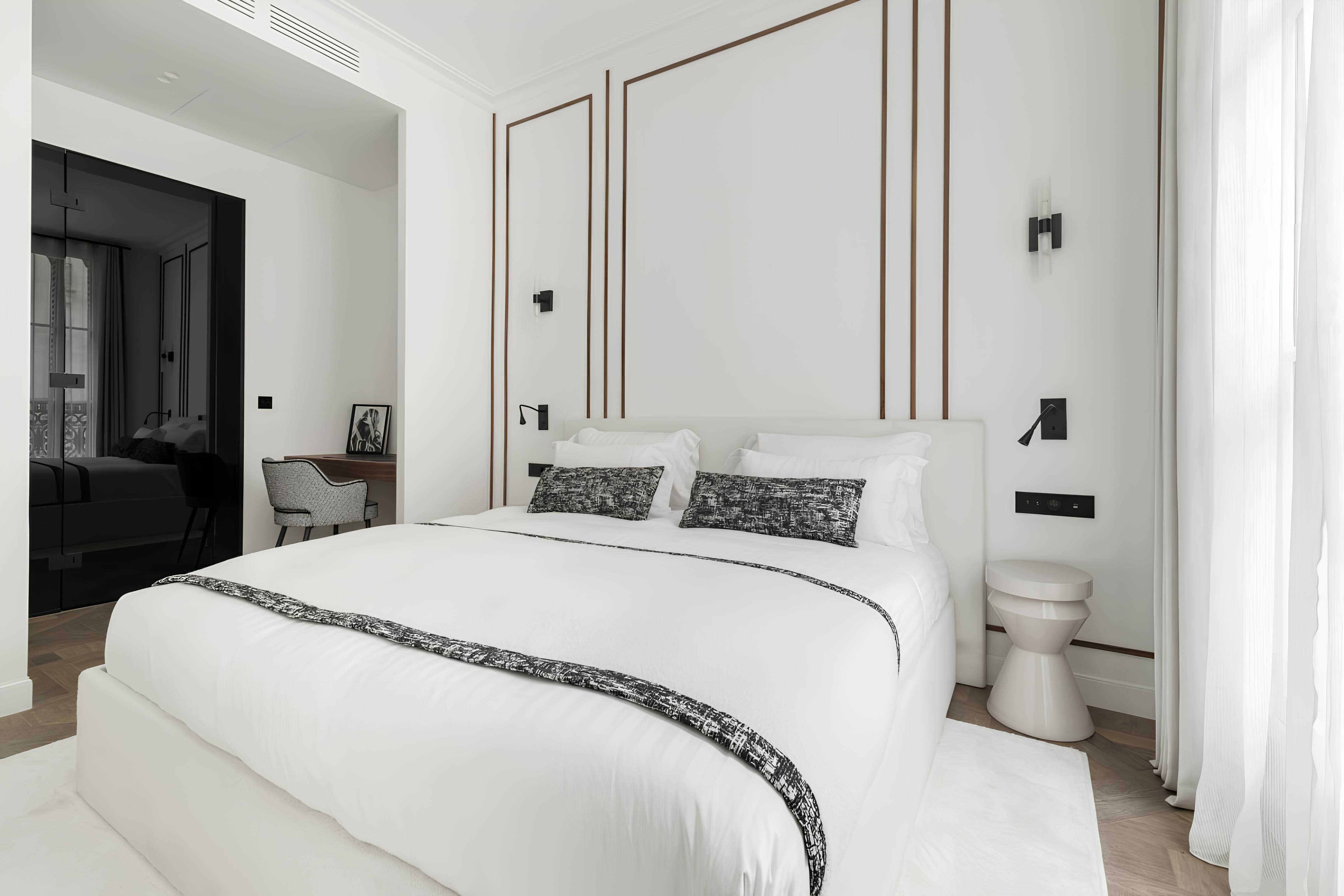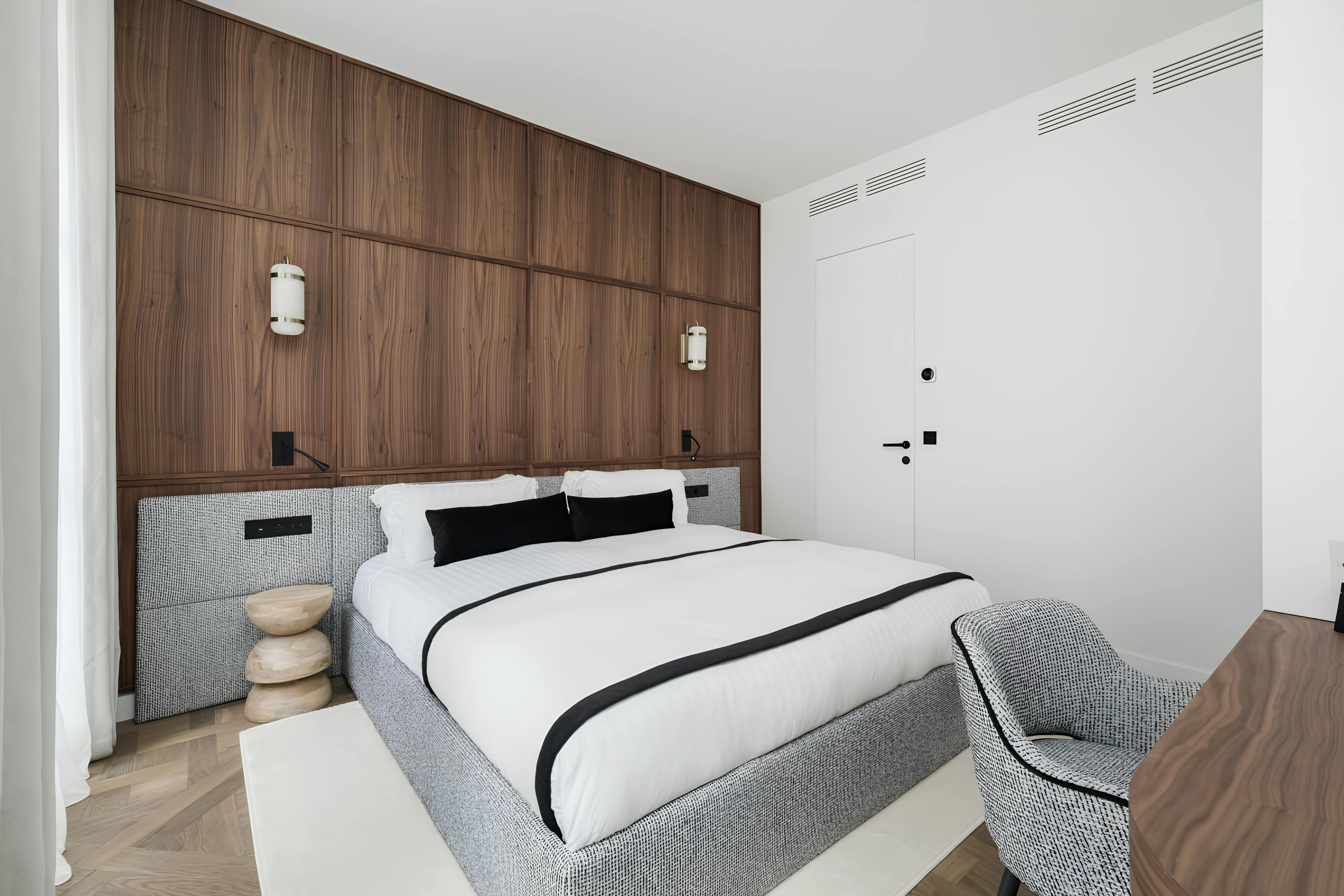 Step inside this beautifully designed apartment and be greeted by an interior that marries historic charm with modern style. The spacious living area features a tastefully designed layout, where classic Parisian touches meet contemporary elegance. The well-equipped kitchen offers everything you need to prepare gourmet meals, while the two bedrooms provide plush comfort and style. The apartment can accommodate up to six guests, with a sofa bed in the living area for additional sleeping space.