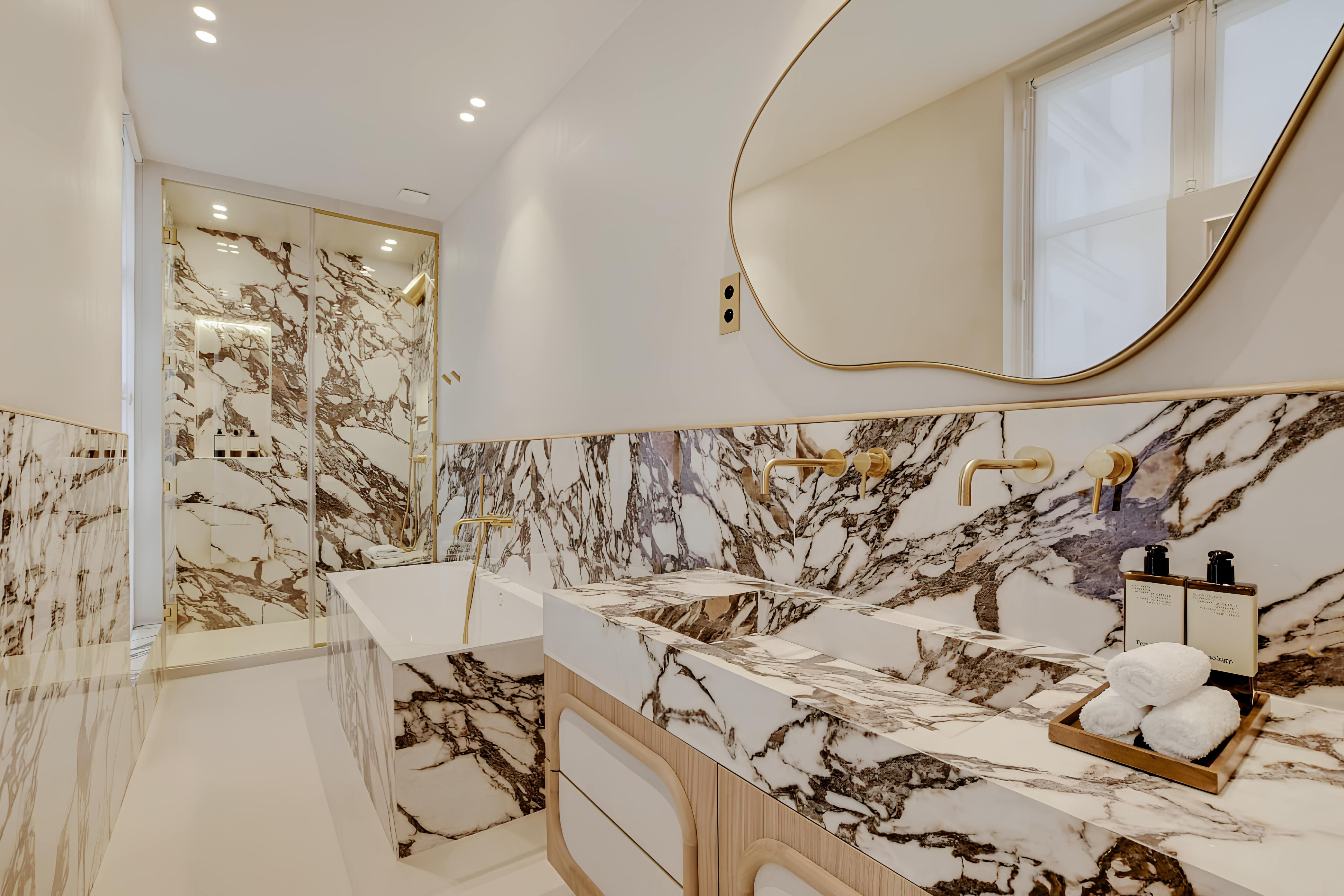 Upon entering the apartment, you’ll be greeted by stylish interiors filled with natural light. The living area, where two guests can comfortably sleep on a sofa bed, offers a seamless blend of classic Parisian charm and modern comfort. The fully equipped kitchen invites culinary exploration, while the two well-appointed bedrooms promise restful nights. Both bathrooms feature contemporary fittings, ensuring a luxurious experience.