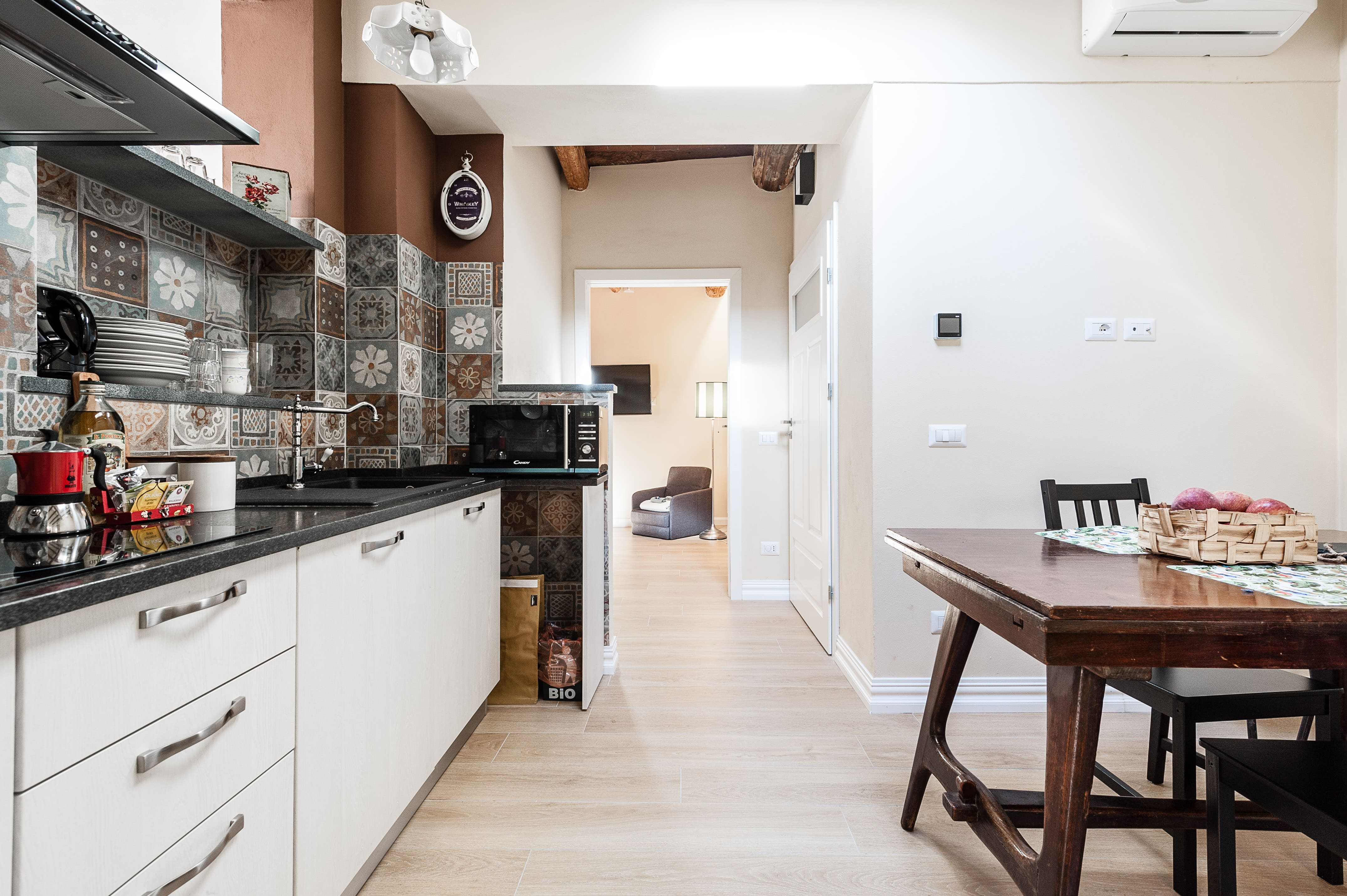 Beyond the charming interiors, a lantern-lit courtyard awaits, offering a private oasis for relaxation. Whether you’re enjoying a morning coffee or an evening glass of wine, this tranquil outdoor space is perfect for soaking in the Tuscan ambiance. The surrounding beauty of Tuscany, with its rolling hills and picturesque landscapes, enhances the allure of this luxury apartment rental Lucca.