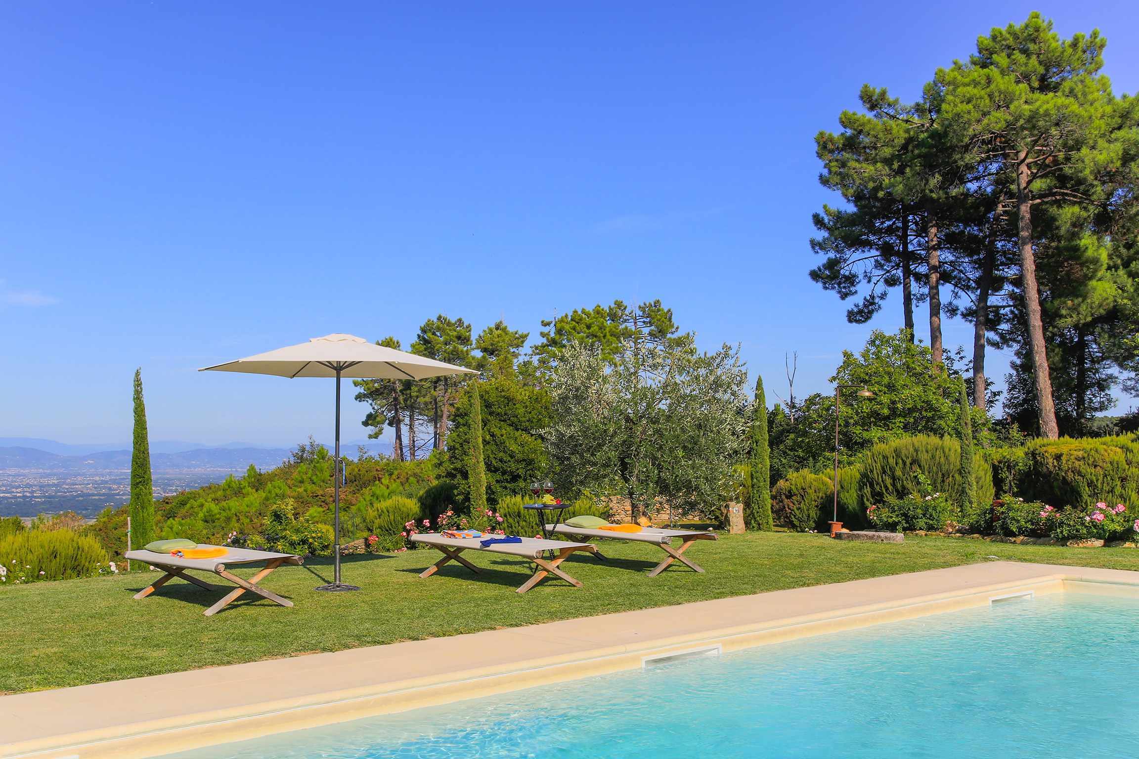 Lucca, with its historic charm and rich cultural heritage, is just a thirty-minute drive away, offering an array of sightseeing opportunities. The weekly market in nearby Ruota is perfect for sampling fresh local produce. For broader explorations, Pisa is a forty-minute drive, while Pietrasanta and Florence are about an hour and fifteen minutes away. Discover more in our full collection of luxury villa rentals in Lucca. For more on what to see and do, visit the Lucca tourism guide.