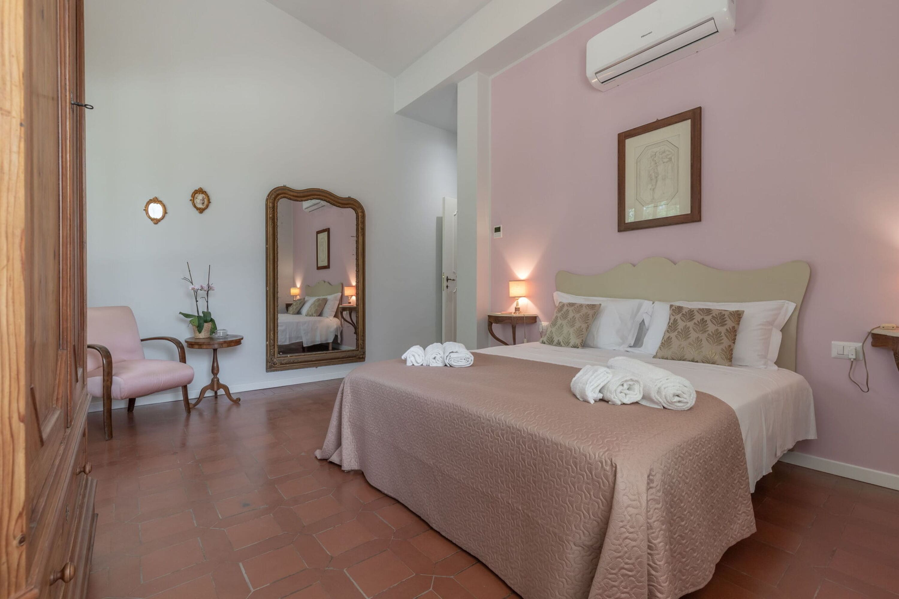 Accommodating up to 14 guests, this apartment features five bedrooms and three bathrooms. While mostly on one level, the mezzanine offers additional living space. The property welcomes pets and is suitable for remote working, with a dining table that doubles as a workspace. Note that the swimming pool is not fenced, so children must be supervised. Browse our luxury villa rentals in Italy for more properties.