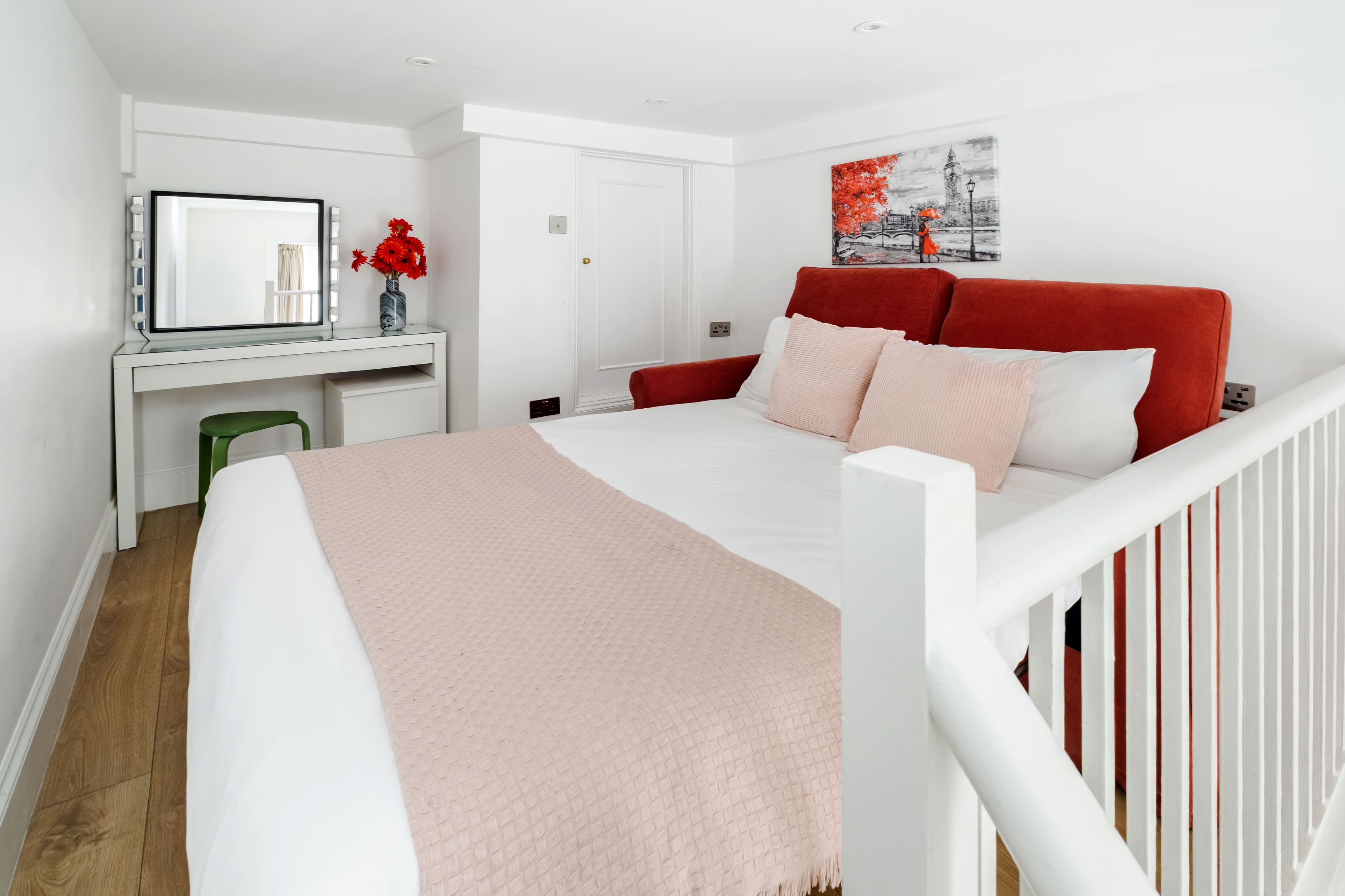 Step inside this exquisite Marylebone apartment to discover a harmonious blend of period features and modern design. The living area, with its tasteful decor and comfortable furnishings, provides a welcoming space for relaxation. A well-equipped kitchen caters to culinary enthusiasts, while the two beautifully appointed bedrooms offer serene retreats. Unique to this apartment is the mezzanine level, providing an additional sleeping area. Whether you’re hosting a family or a group of friends, this apartment accommodates up to eight guests, with sofa beds in the lounge and mezzanine spaces ensuring flexibility.