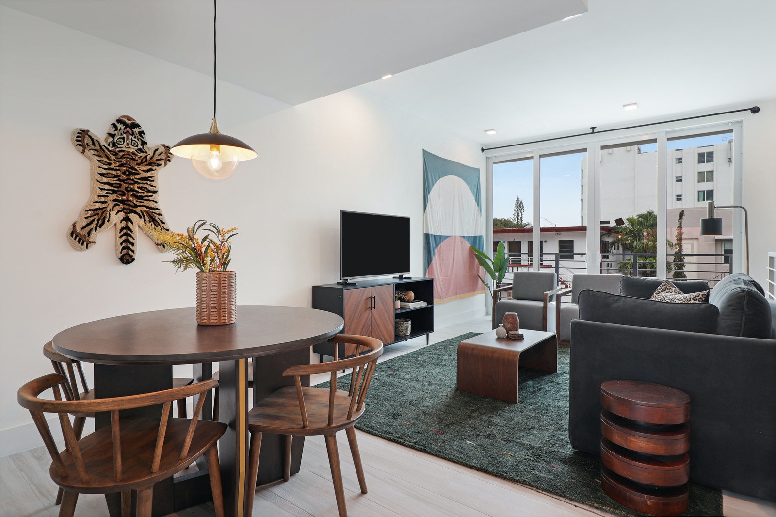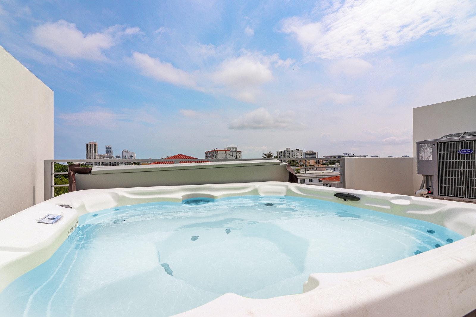 It’s hard to choose our favourite part of this home; there are so many contenders. Perhaps it’s the design-led, contemporary décor and light-filled bedrooms (each with its own en-suite), commanding green views across Miami. Maybe it’s the rooftop terrace – a private space for you and your guests to enjoy the Florida heat as you lounge on the couch with a cocktail in hand, curl up with a book in the cocoon chair, or fire up the grill for a delicious alfresco dinner. Or perhaps it’s the location – this stylishTownhouse/Apartment is an enviable five-minute walk from Miami Beach, so hitting the sand is a simple matter of crossing the street and finding the perfect place to lay your towel. And you’re just a ten-minute jaunt from the high-end boutiques and buzzing restaurants and bars of glamourous South Beach. Either way, this place has got it all going on. So gather your troops and make it snappy; Miami Beach is waiting.