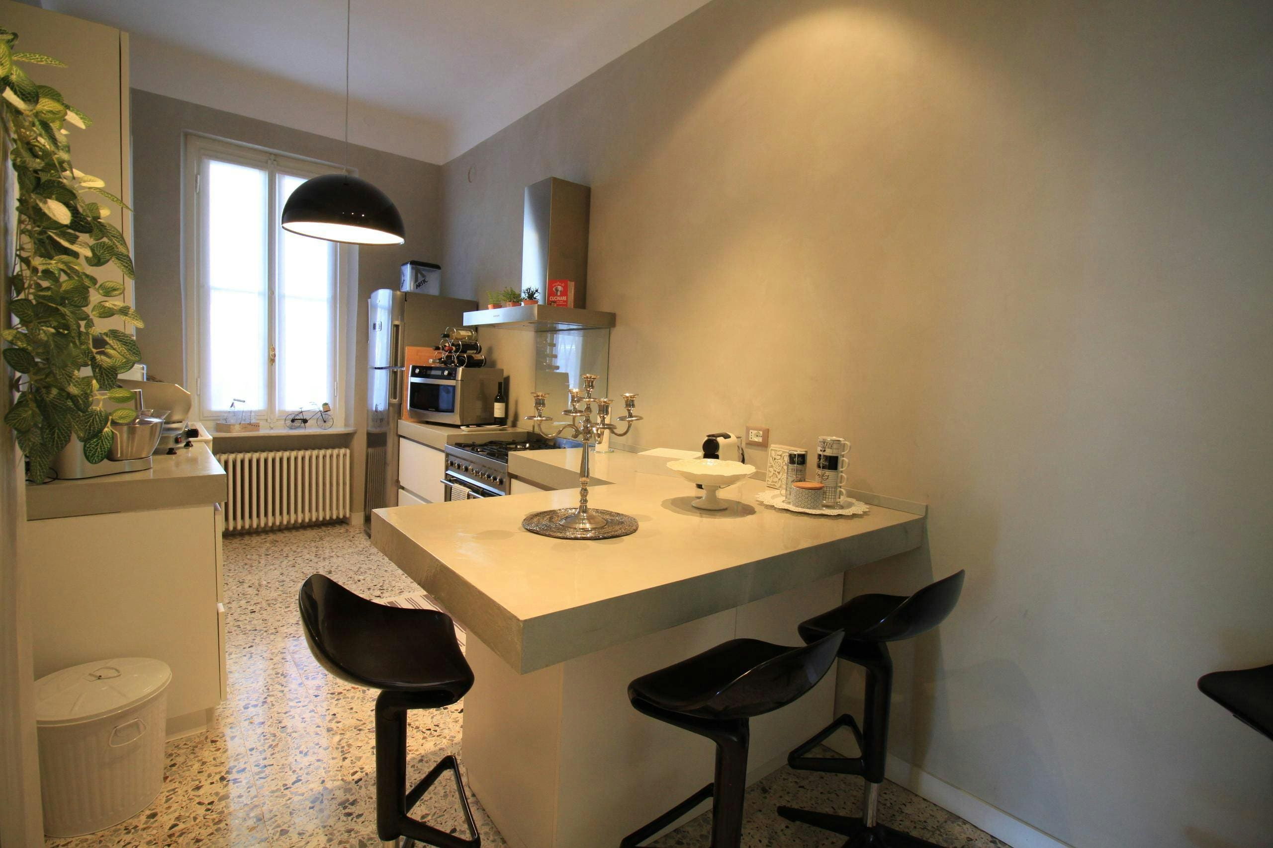 The apartment accommodates up to seven guests, featuring four bedrooms and three bathrooms. A lift from the garage to the main entrance ensures easy access. Covered parking for five cars is available. Browse our luxury villa rentals in Italy for more properties.