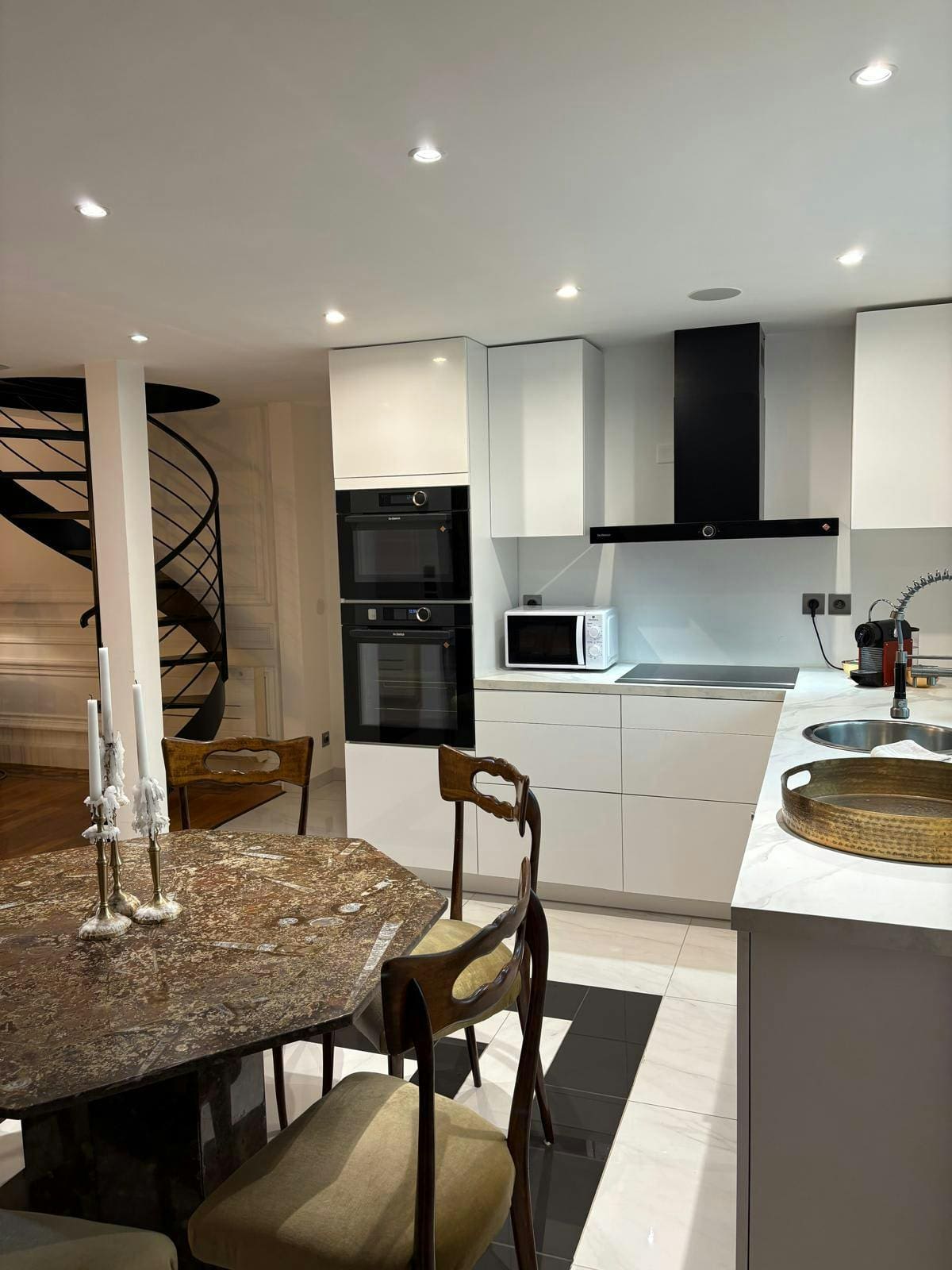 Step into a world of opulence as you explore the interiors of this Monaco house. The design is a harmonious blend of modern luxury and classic charm, featuring gold-toned decor and captivating artwork that adds a touch of glamour. The spacious living area is perfect for relaxation, while the state-of-the-art kitchen is equipped with all the essentials for culinary enthusiasts. Each bedroom is a sanctuary of comfort, with plush bedding and en-suite facilities, although it’s worth noting that the first bedroom’s en-suite is within the room, offering limited privacy.
