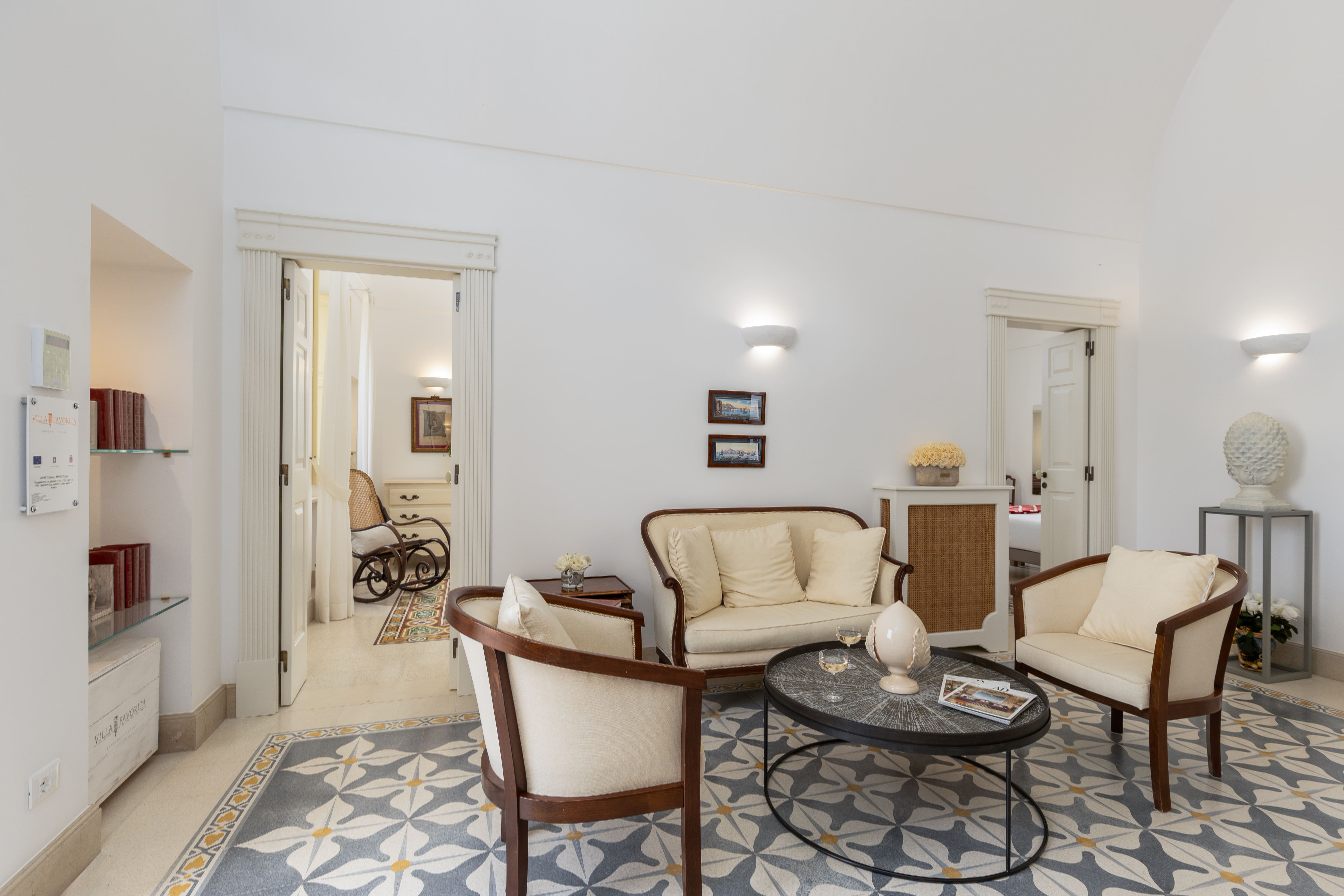 Step outside to discover the villa’s expansive terraces and private swimming pool, available from April to November. The outdoor dining area, complete with a summer kitchen, is perfect for al fresco meals under the Italian sun. The lush gardens and panoramic seaviews provide a serene backdrop for relaxation.
