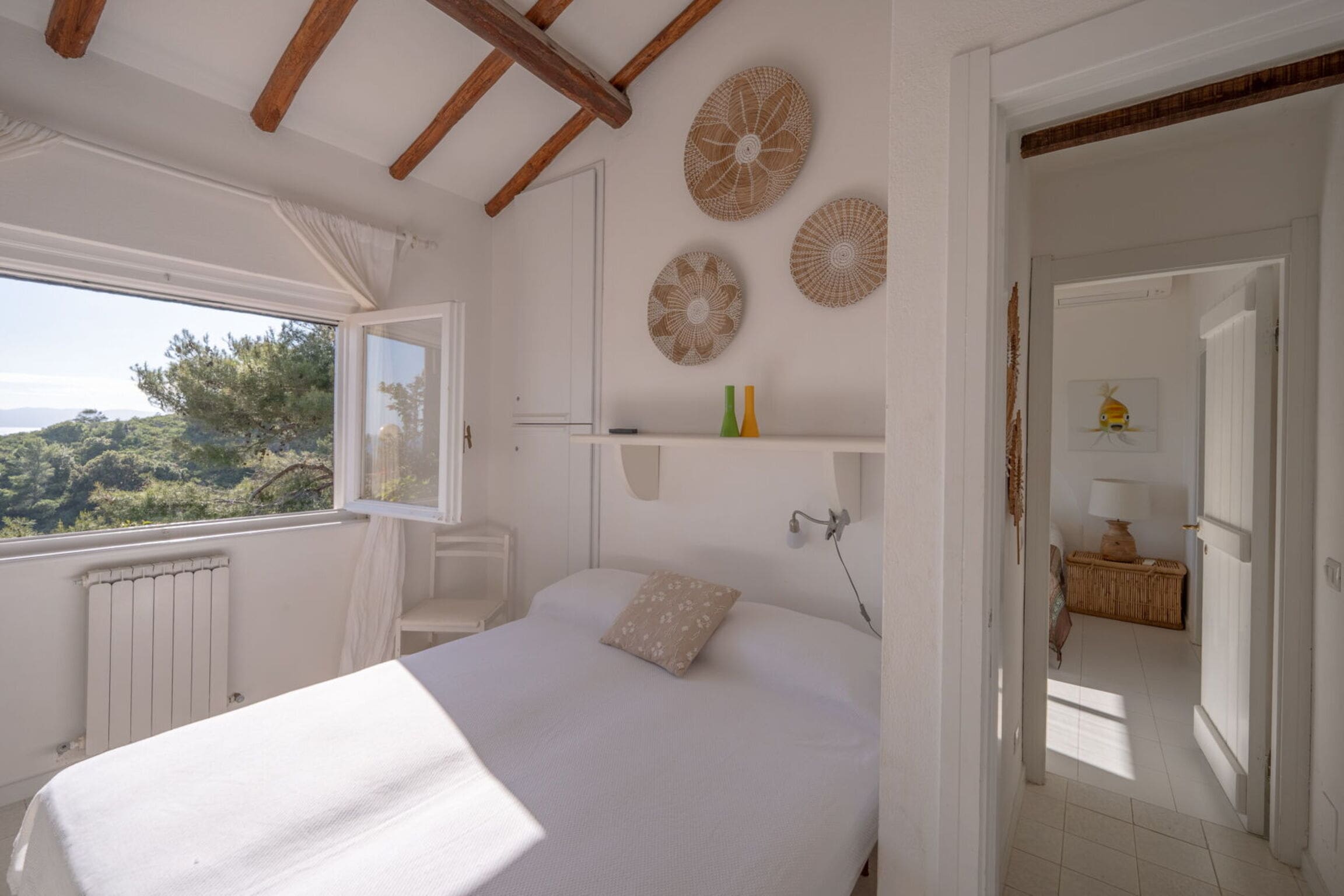 Step into a world of refined interior design, where each room tells its own story. The main house boasts four elegantly furnished bedrooms, while the guesthouse provides a cozy living room with a double bed, a kitchenette, and a bathroom, offering privacy and convenience. The spacious living area, adorned with panoramic windows, captures the essence of the surrounding seascape, creating a serene ambiance. State-of-the-art amenities, including air conditioning, ensure a comfortable stay, ideal for both relaxation and remote working.