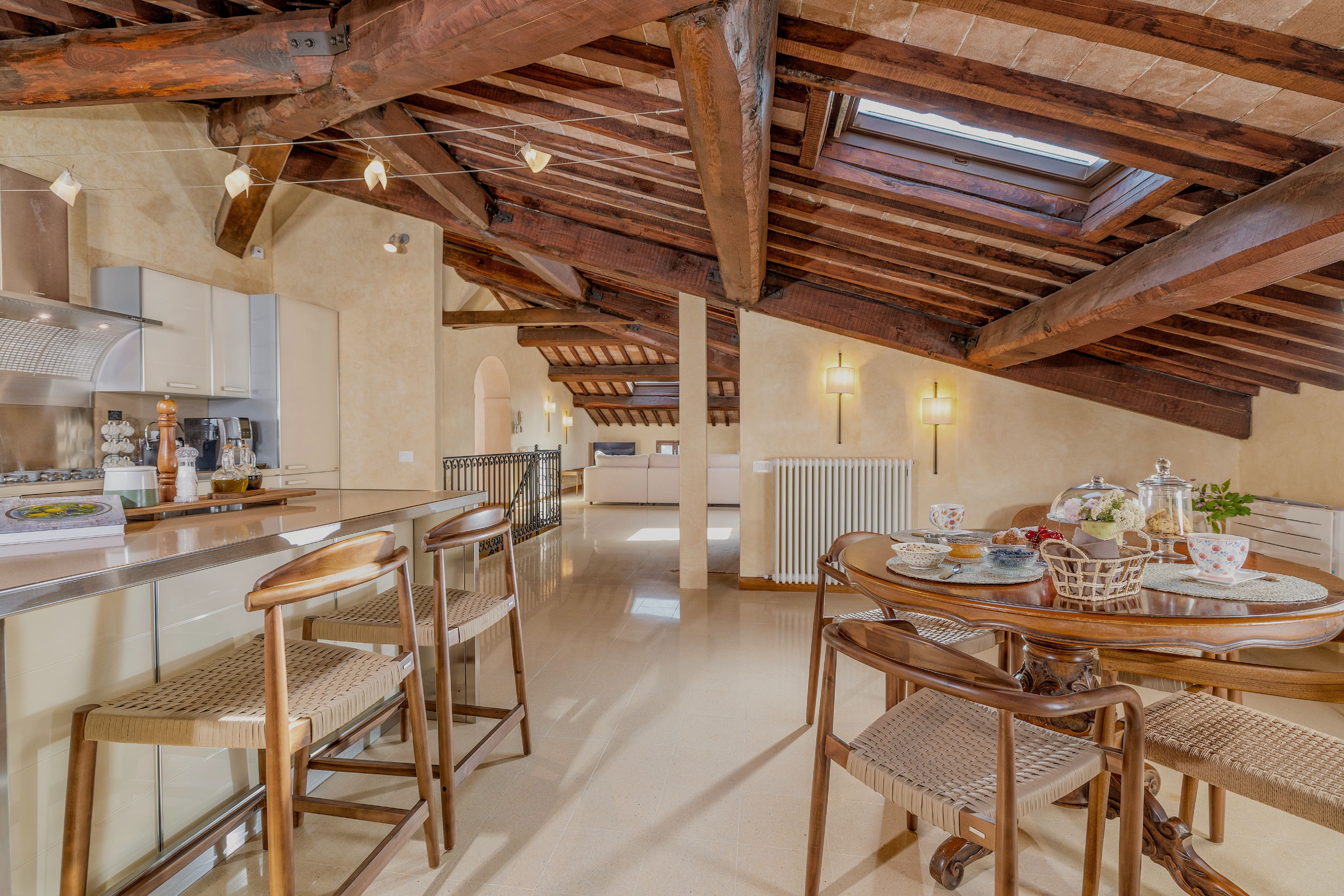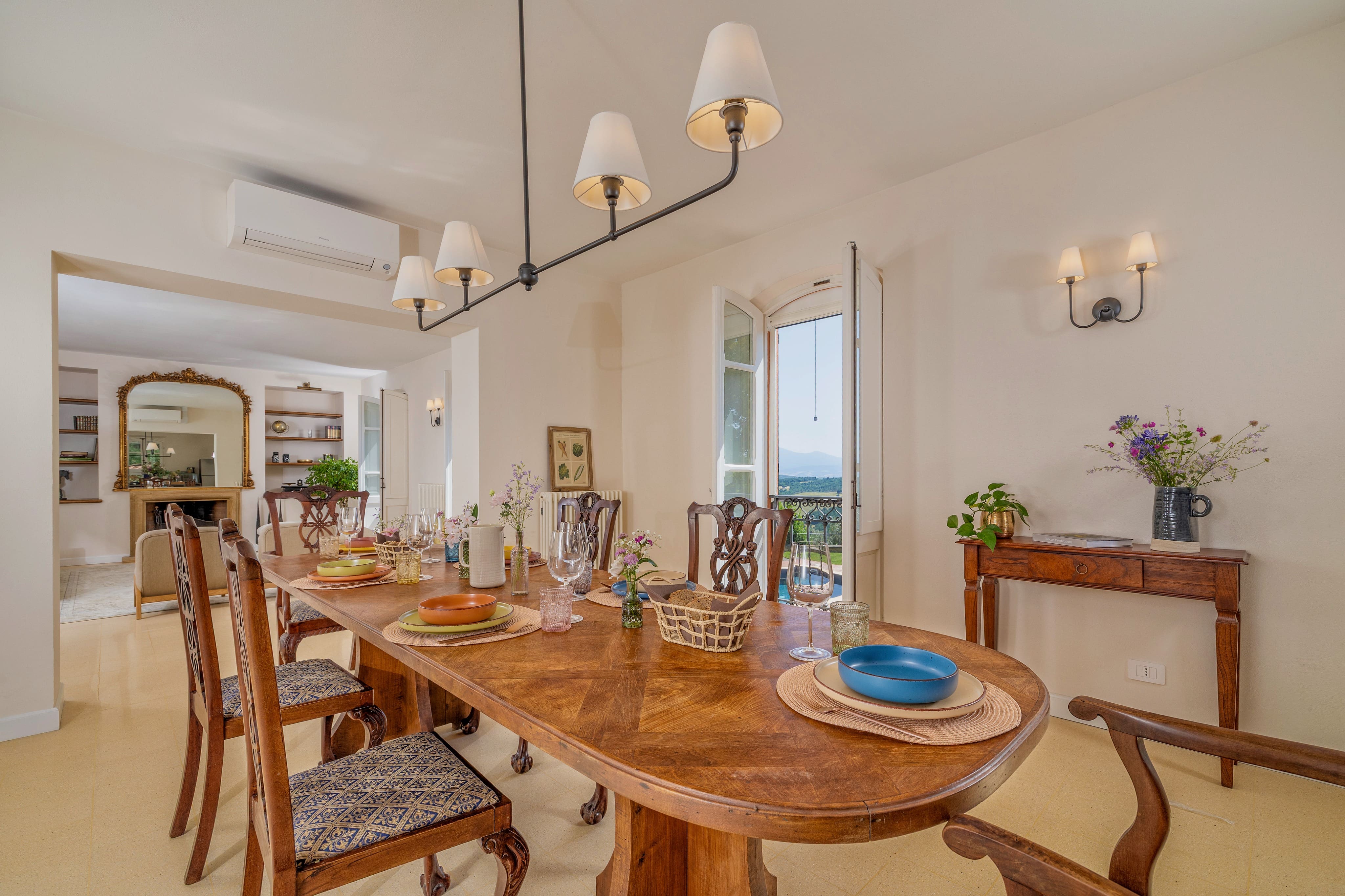 Step inside to discover beautifully appointed interiors that reflect the rustic elegance of Tuscany. The villa features six spacious bedrooms, each equipped with air conditioning for your comfort. The living areas are adorned with traditional Tuscan decor, offering a warm and inviting atmosphere. A fully equipped kitchen awaits culinary enthusiasts, while the dining area provides a perfect setting for family gatherings.