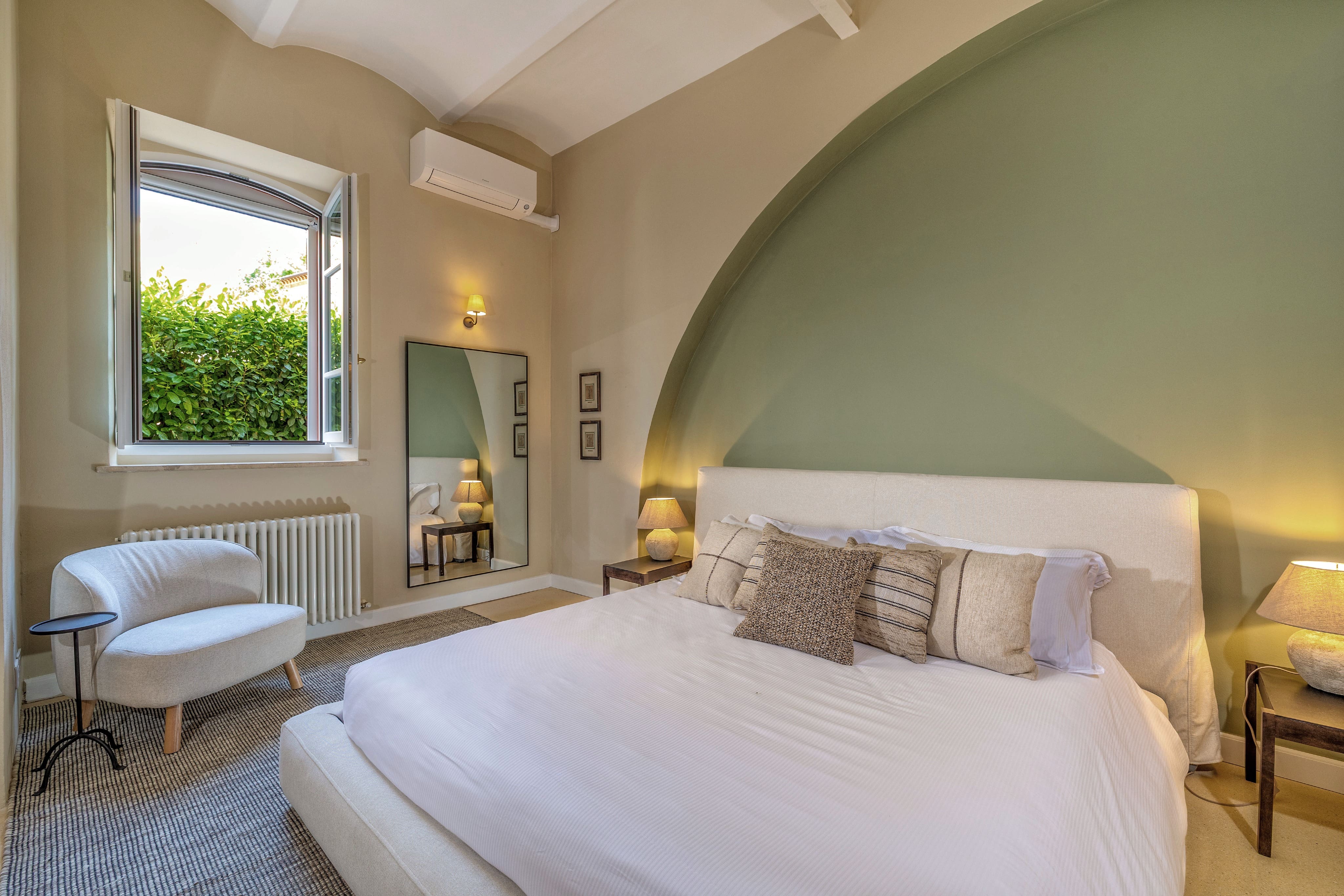 Accommodating up to 21 guests, this villa features 11 bedrooms with flexible sleeping arrangements, including two rooms suitable for guests with limited mobility. There is ample parking for 10 cars, and an EV charging station is available. The villa’s location, accessible via an even but unpaved road, ensures privacy and tranquility. Browse our luxury villa rentals in Italy for more properties.