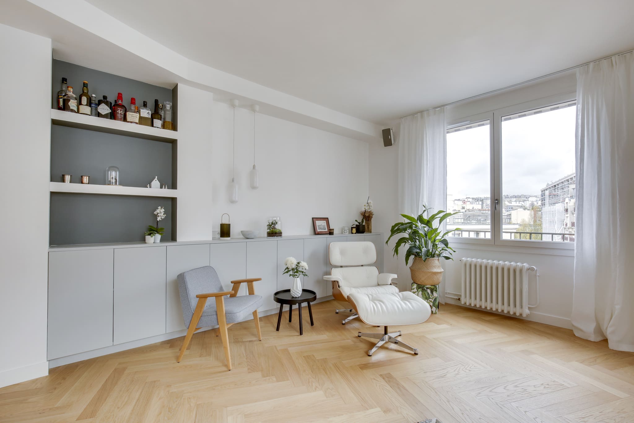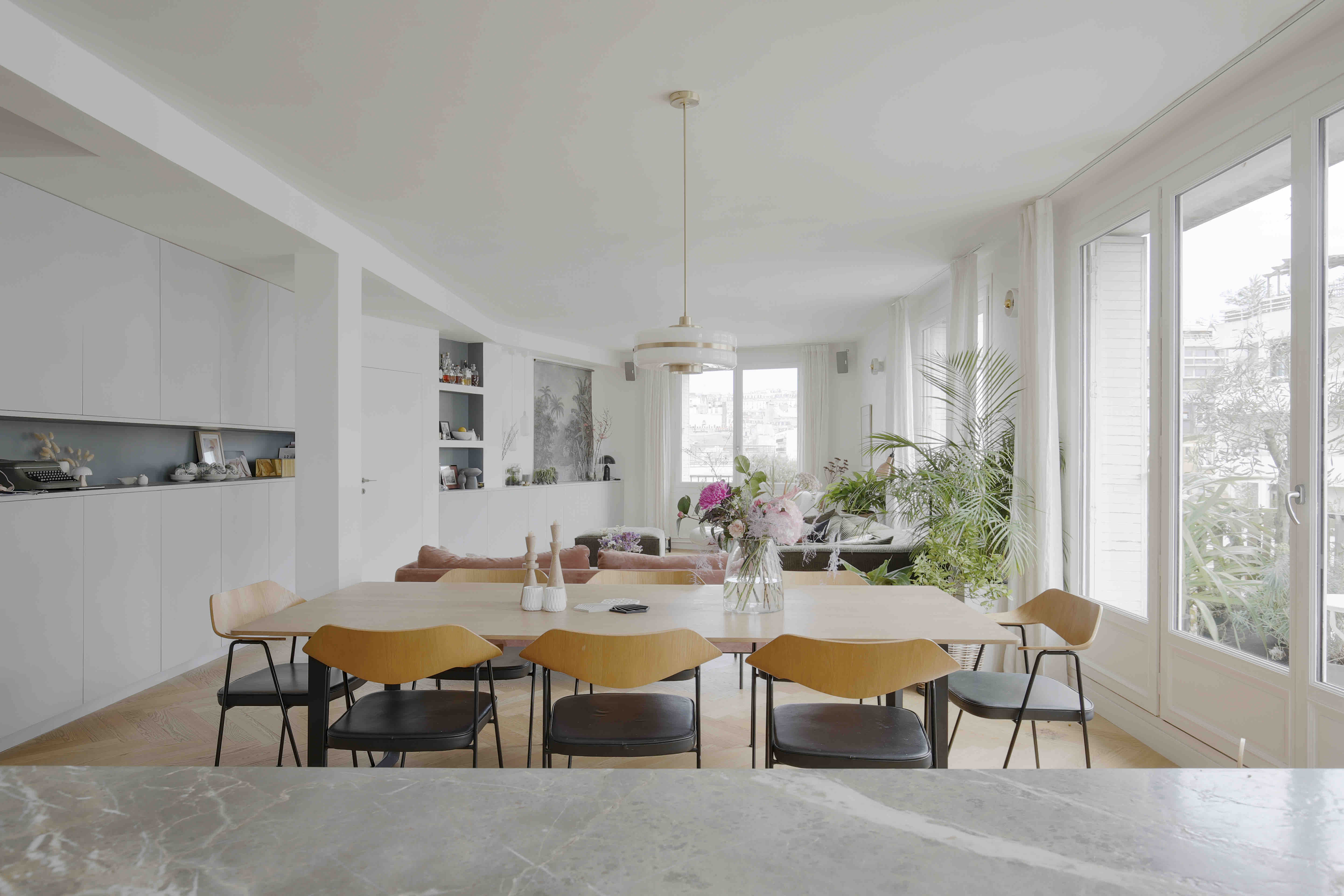 The interior of this luxury townhouse rental in Paris is a masterpiece of style and comfort. The home is filled with vintage decor and unique artifacts collected over the years, providing a charming and eclectic atmosphere. Each of the three double bedrooms is located on its own floor, offering privacy and tranquility. The beautifully designed en-suite bathrooms and sitting areas in each bedroom ensure a comfortable stay. The spacious living room is perfect for relaxing after a day of exploring, and the fully equipped kitchen provides everything needed for a gourmet meal.