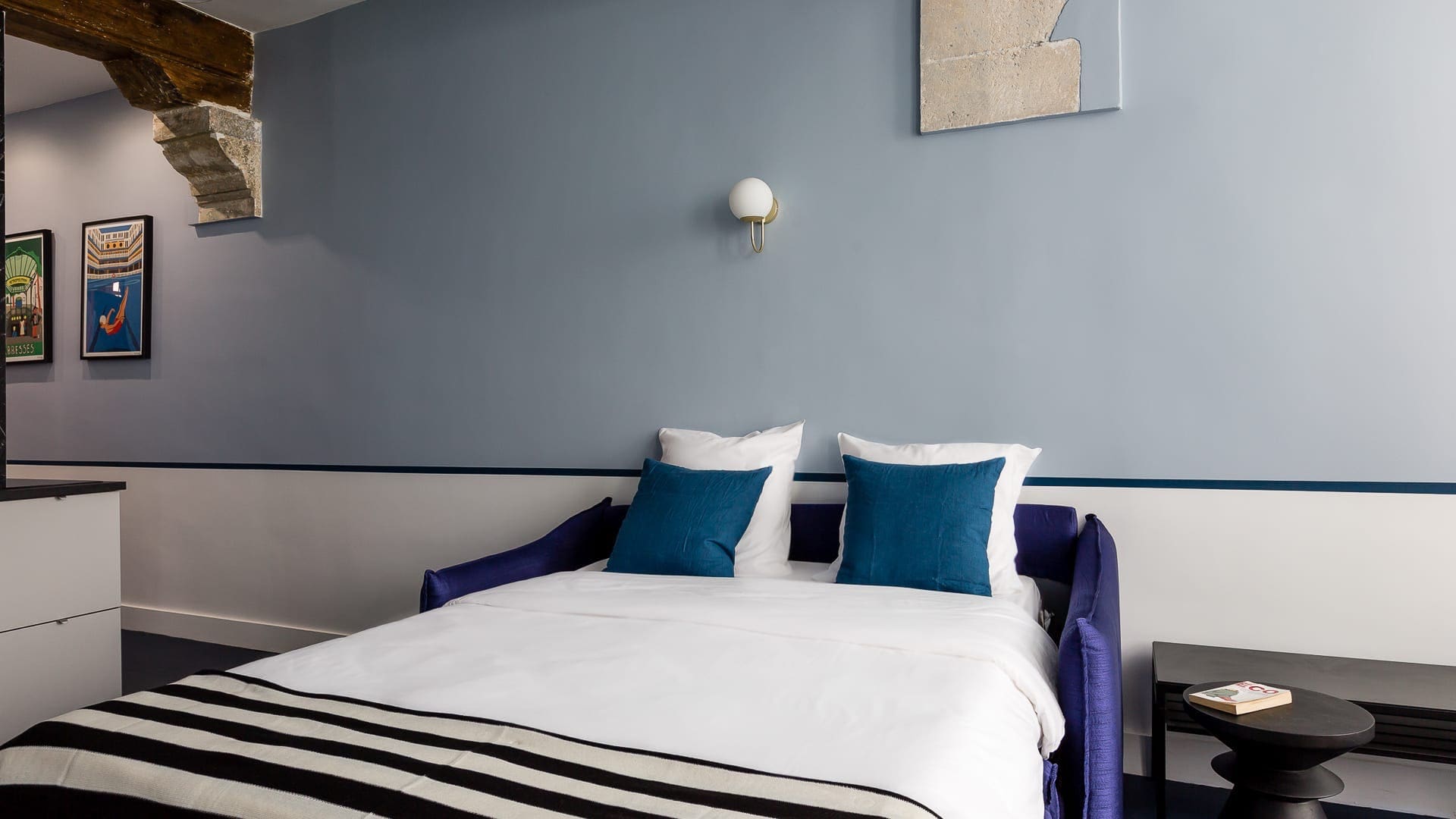 The apartment comfortably accommodates six, with additional space for four more guests on sofa beds. It features three bedrooms and two bathrooms, with the master bedroom having an en-suite. Please note, while the apartment is step-free, there is no elevator, which may pose a challenge for guests with reduced mobility. Parking is not available, but public transportation is easily accessible, with Étienne Marcel metro station just a minute’s walk away. Browse our luxury villa rentals in France for more properties.