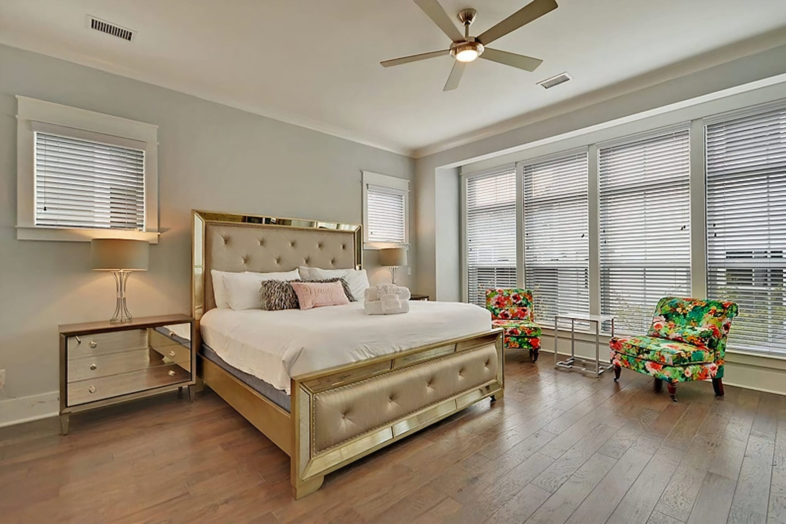 From the outside this Mount Pleasant seems typical of the neighbourhood. But step inside and you’ll find an elegant interior that pays homage to the traditional southern style of this historic port city. Defining itself from the others in the little things, this five-bedroom home is a comfortable and luxurious retreat welcoming up to ten guests. Stylishly decorated, with a granite countertop island kitchen, a large L-shaped sofa facing a gas fireplace, high vaulted ceilings, pine flooring, and a screened patio deck out the back, this home is an instant classic. The open-plan kitchen, living room and dining area is perfect for large groups to gather round, socialise, and unwind after a day of exploring. When it comes to venturing outside, you couldn’t be better placed. With the warm white sandy beaches of Sullivan’s Island and Folly Beach both nearby, as well as Downtown Charleston and its buzzy restaurant scene, you will certainly be glad to return to a place you can call home sweet home.